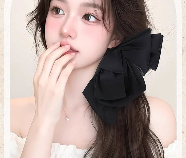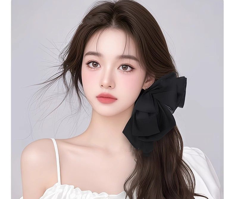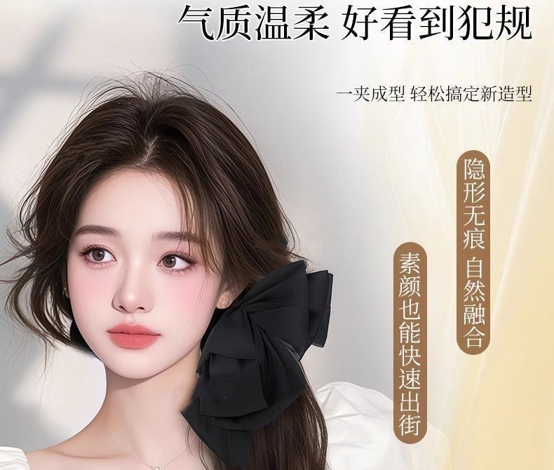 - 雪纺蝴蝶结抓夹马尾【自然黑】35厘米