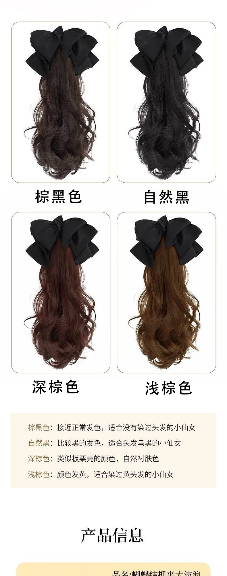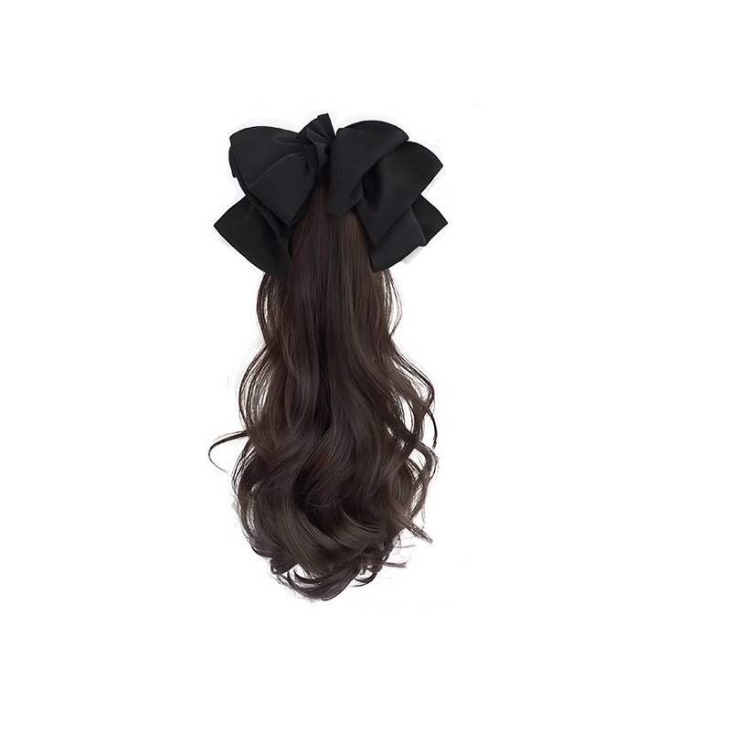 - 雪纺蝴蝶结抓夹马尾【棕黑色】55厘米