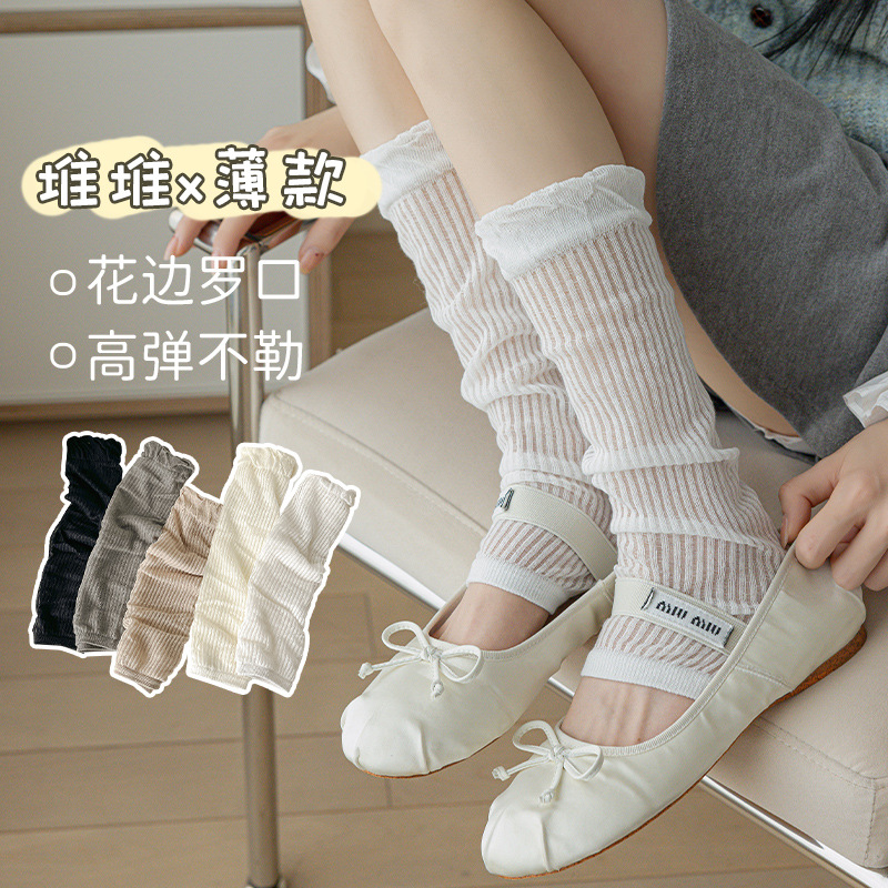 白色超薄堆堆袜套春夏款罗口花边芭蕾风小腿袜透气百搭JK长筒袜子