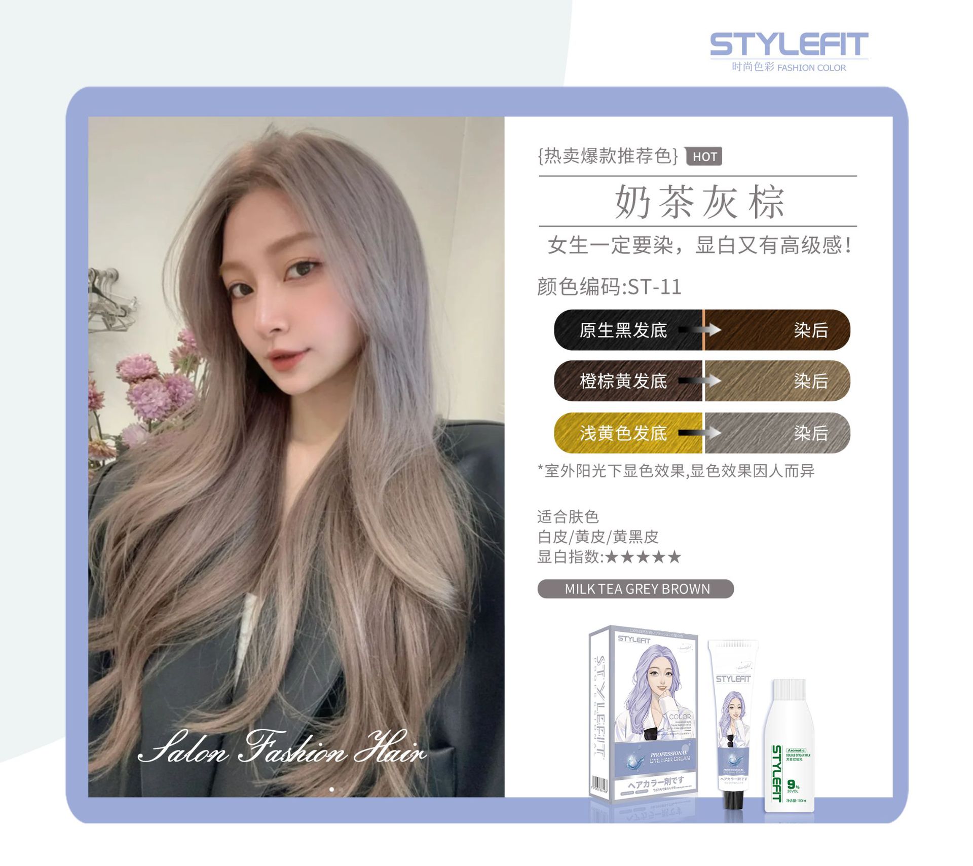 亮色无氨染发剂美发产品盖白发榛果灰棕流行色染发膏