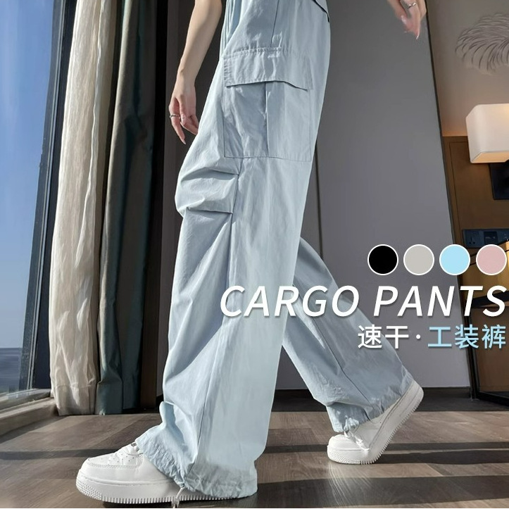 早秋潮流美式工装裤夏季薄款小个子高腰直筒束脚登山直筒运动裤女
