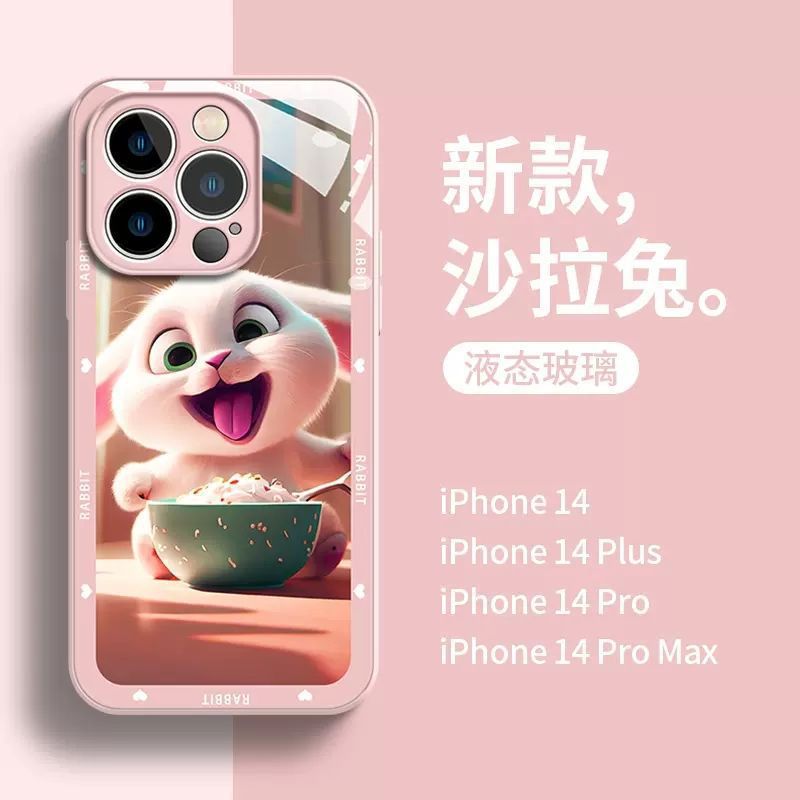 沙拉兔苹果14手机壳女款iphone13pro粉色玻璃全包12防摔11