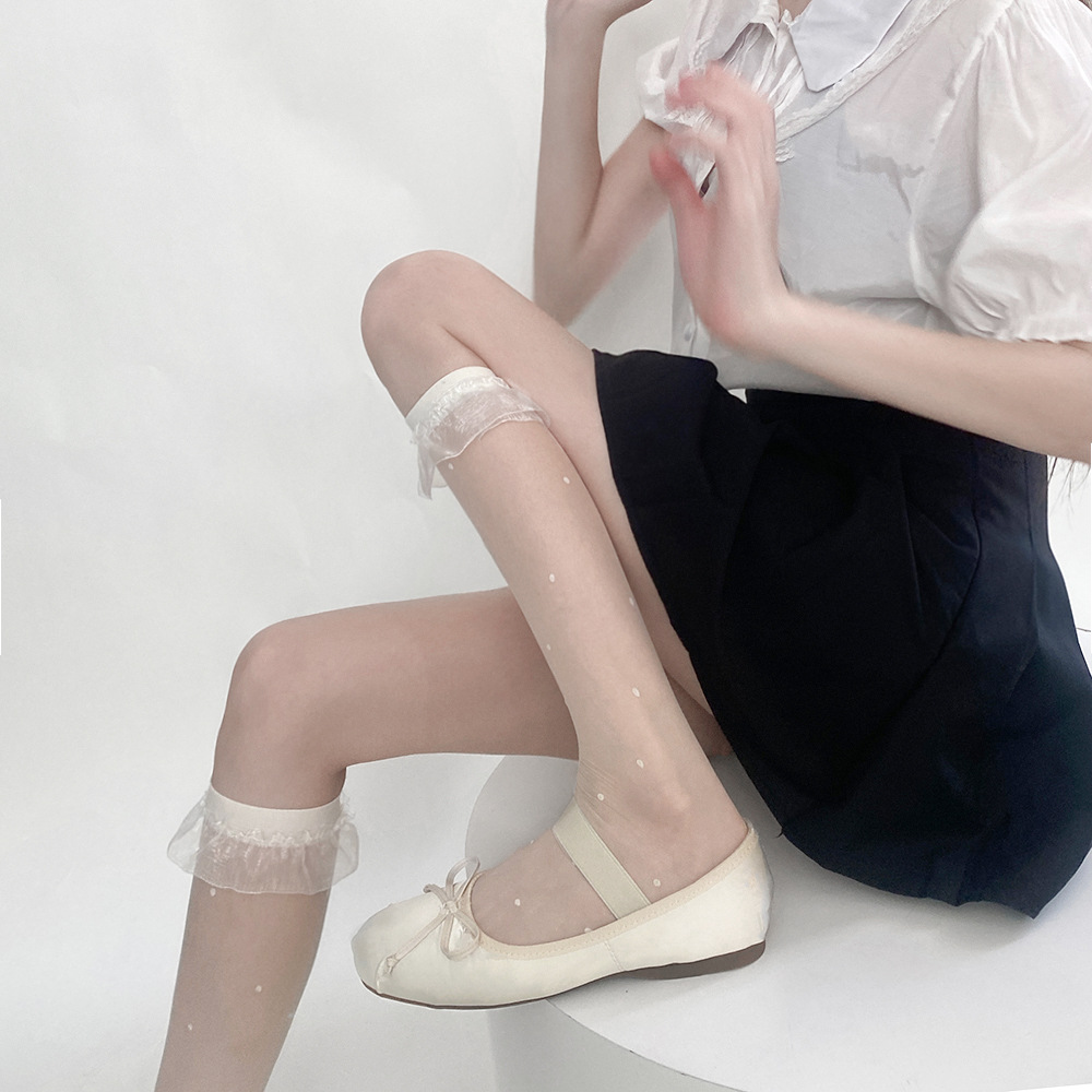 夏季超薄款纯欲少女甜美芭蕾风任意剪网纱花边圆点小腿袜子中筒袜