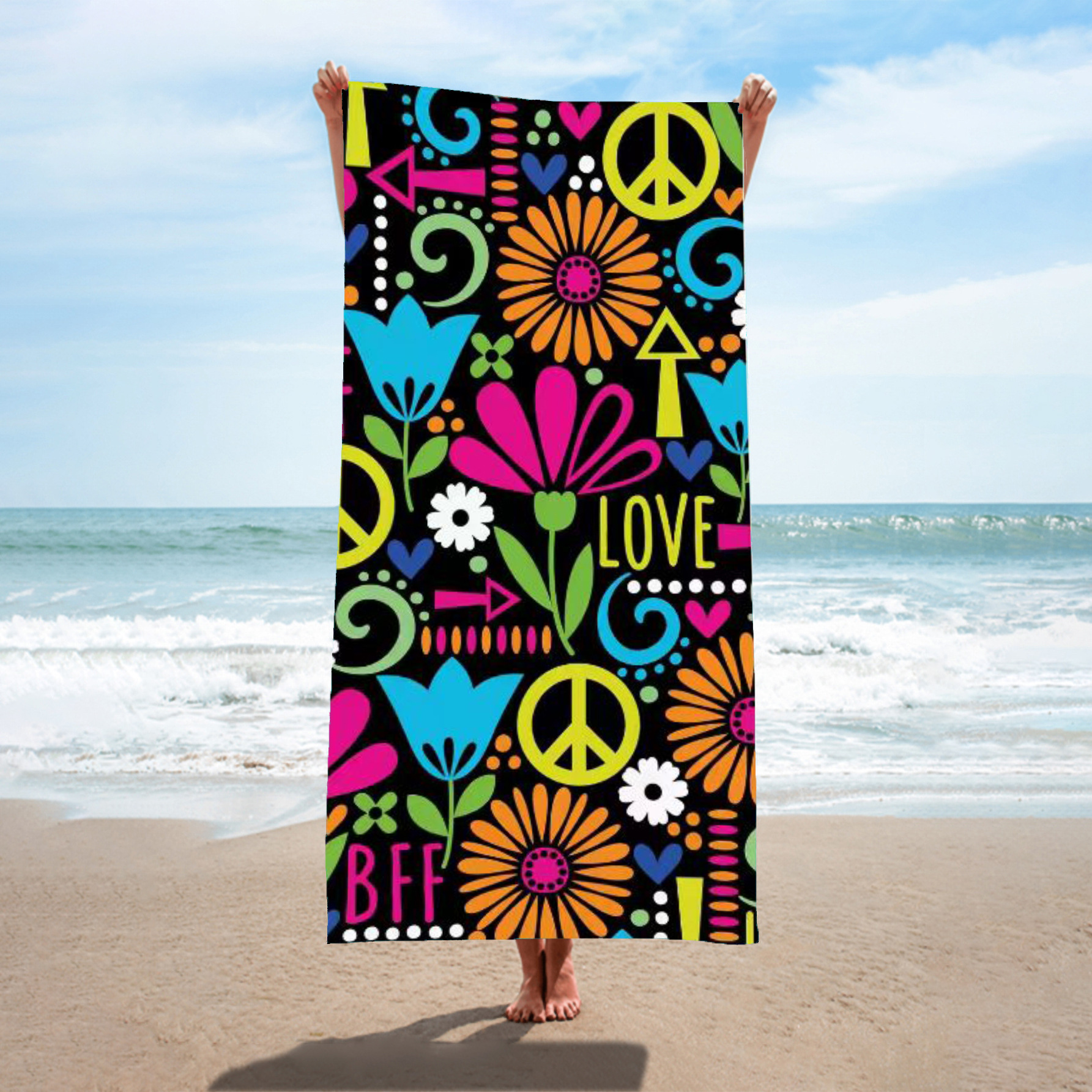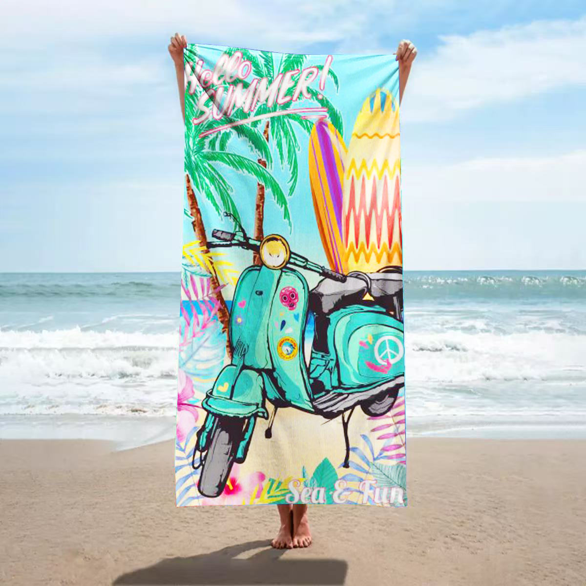 超细纤维平网分散印花沙滩巾