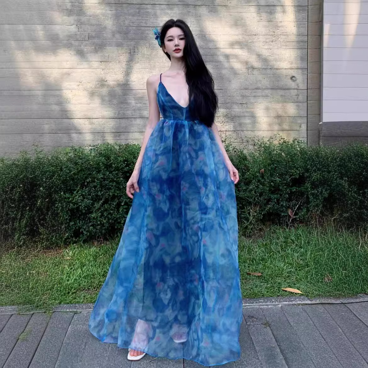 纯欲碎花吊带连衣裙女夏桔梗裙长裙海边度假沙滩裙子仙女裙