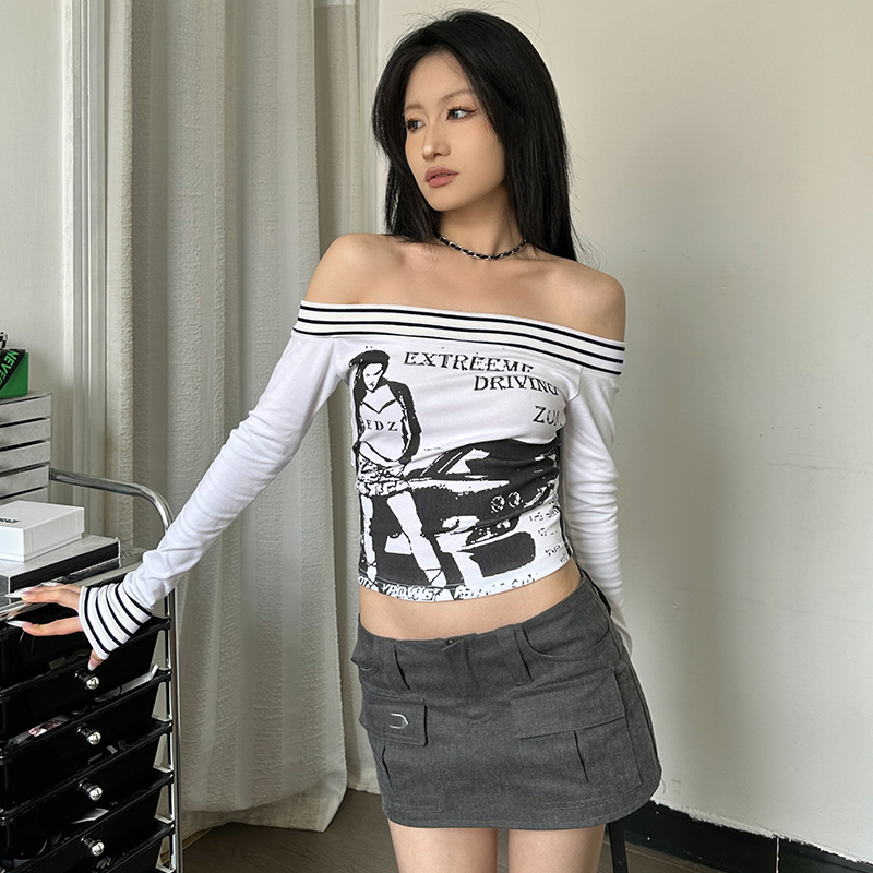 美式复古风性感辣妹上衣秋季女装新品修身显瘦朋克潮人T恤女
