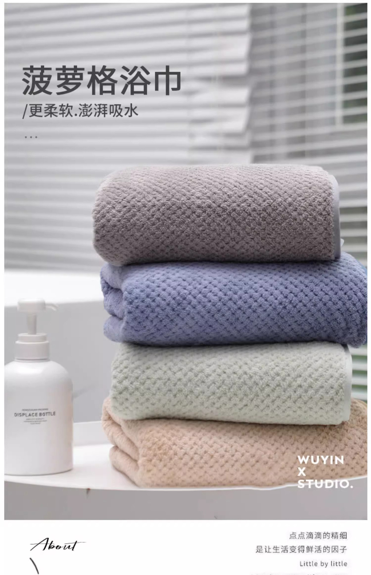 超市同款菠萝格浴巾品牌一件代发毛巾珊瑚绒加厚吸水A类抗菌