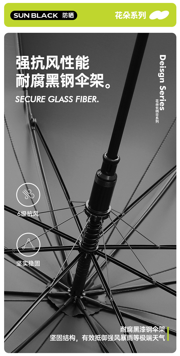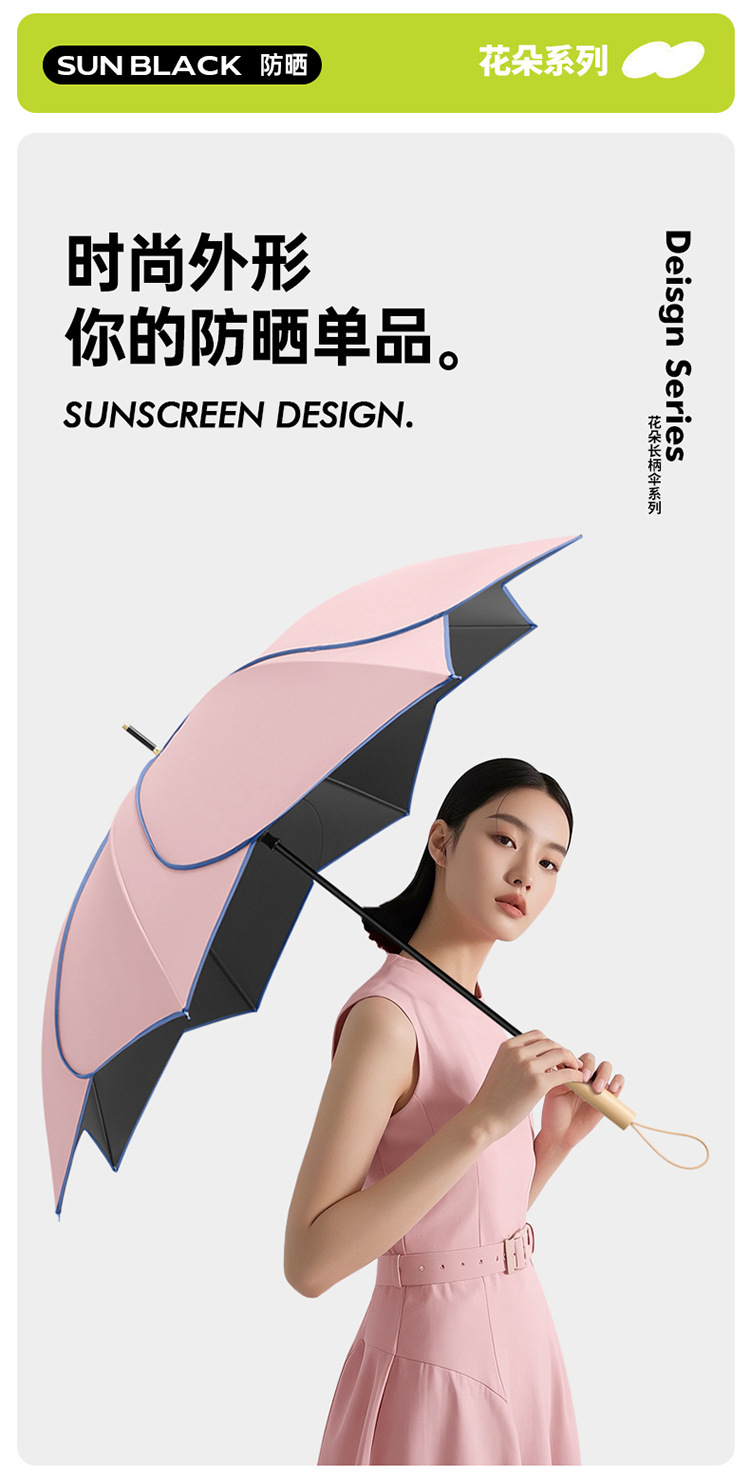 新款花朵伞长柄伞晴雨两用伞防紫外线防晒遮阳伞黑胶直杆伞