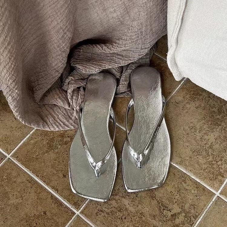 韩版软底人字拖女夏外穿时尚银色夹脚海边沙滩拖鞋防滑凉拖