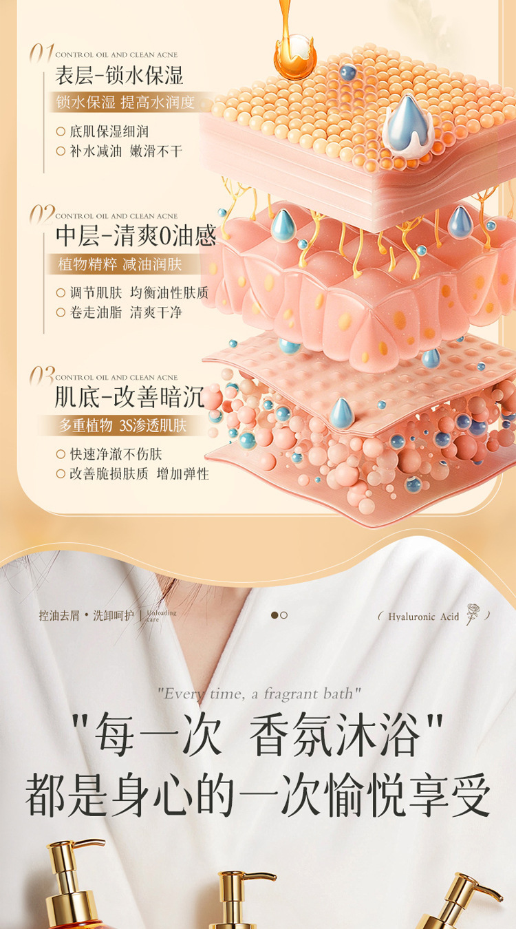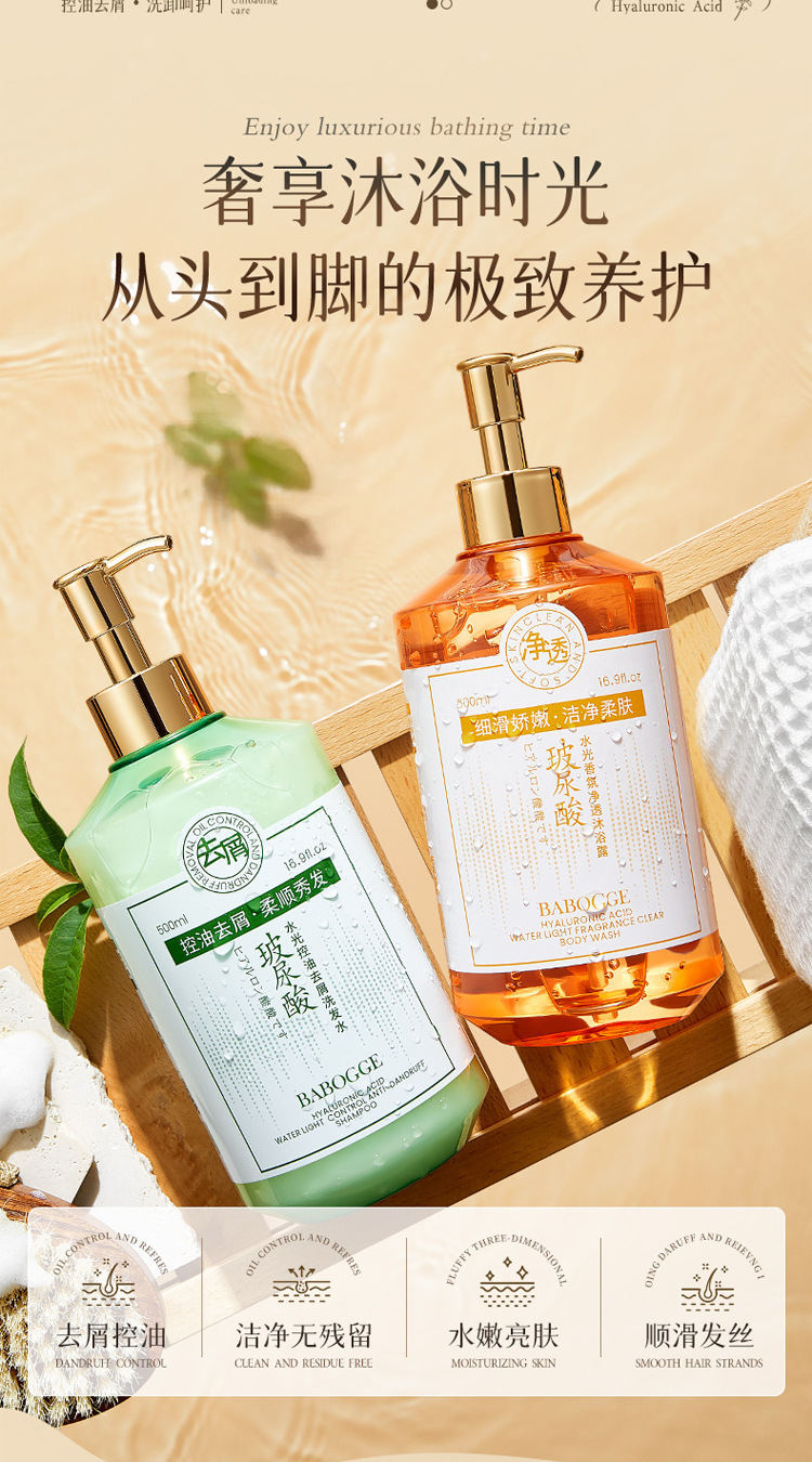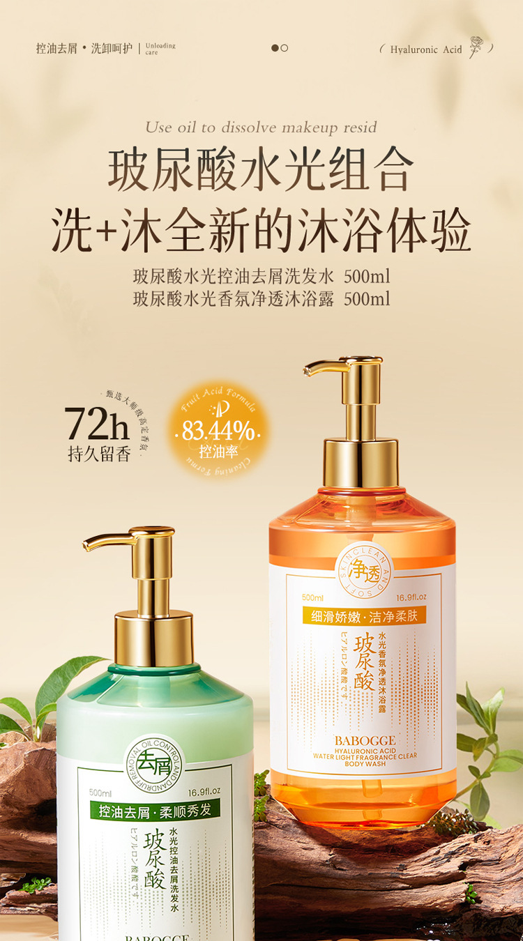 玻尿酸水光香氛控油洗护套装深层清洁持久留香洗发水沐