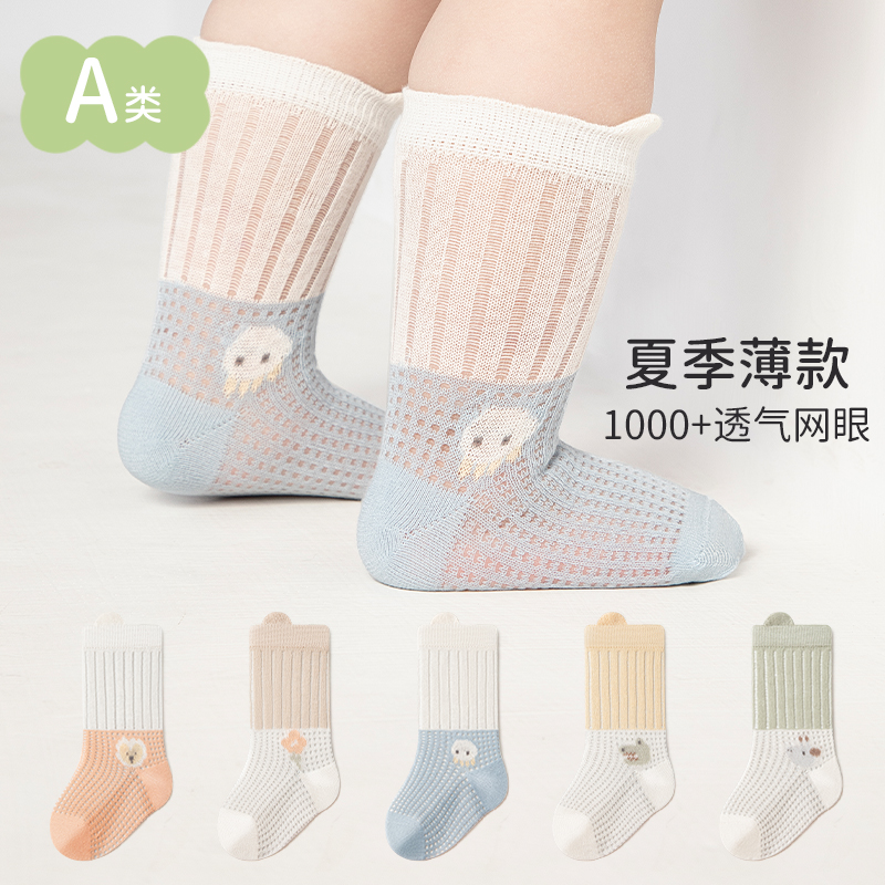 宝宝袜子夏季薄款纯棉网眼透气松口无骨新生幼儿初生婴儿中长筒袜