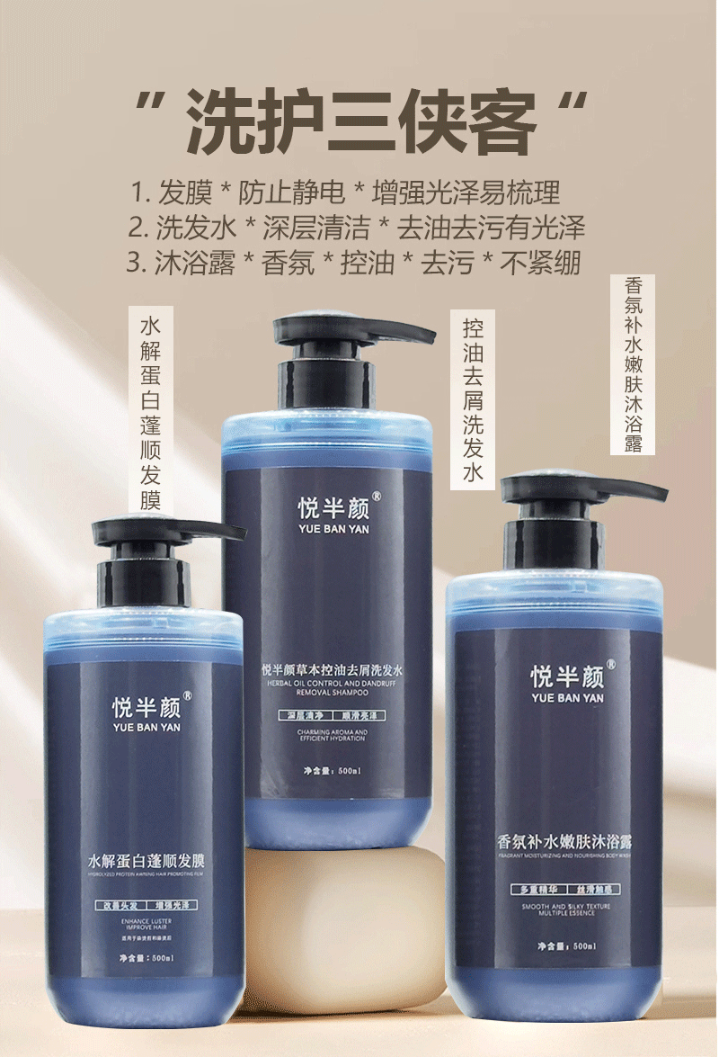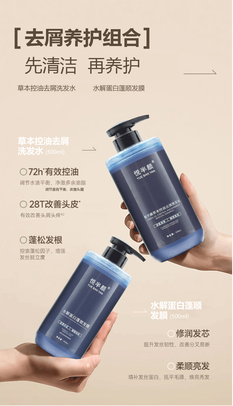 悦半颜草本控油去屑洗发水500ml
