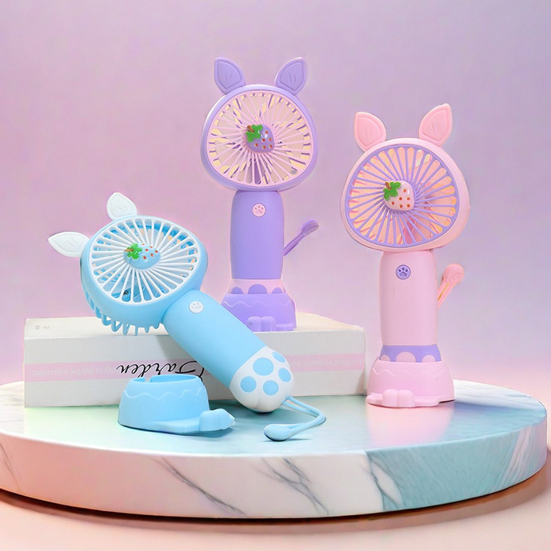 可爱卡通小兔子手持便携式迷你充电风扇 学生usb桌面支架挂绳风扇