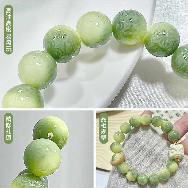 小青柠菩提手串男款盘玩六字箴言菩提子文玩佛珠醒狮手链国潮