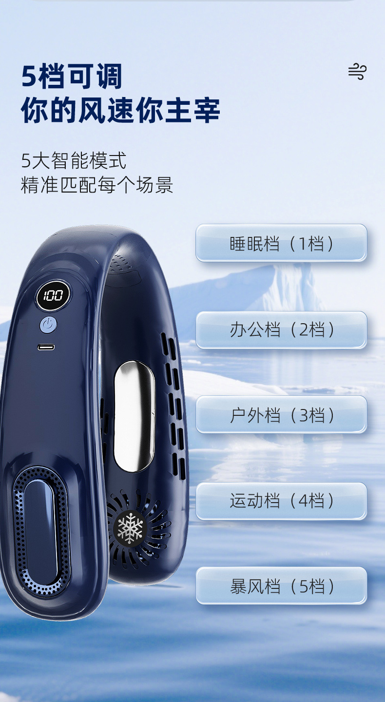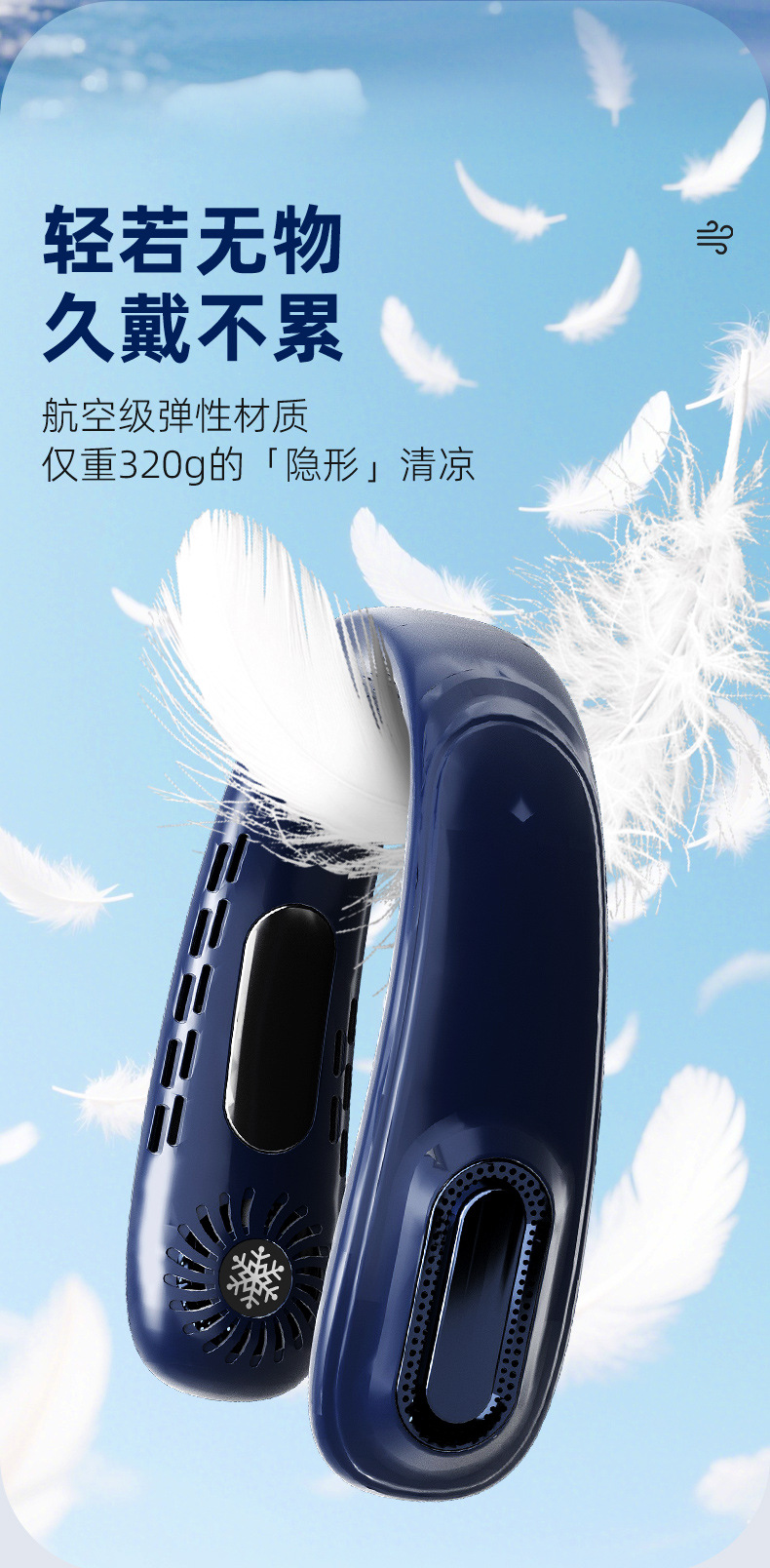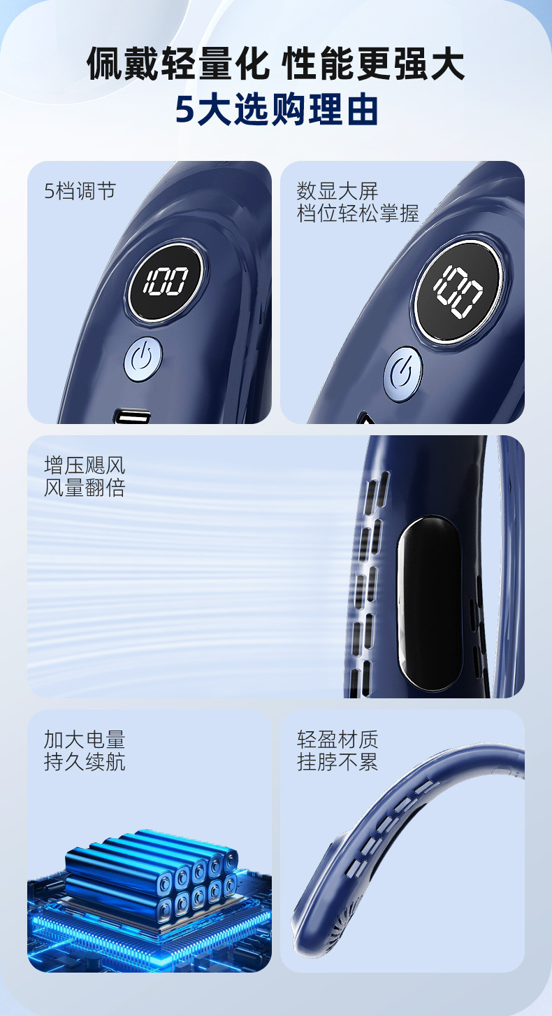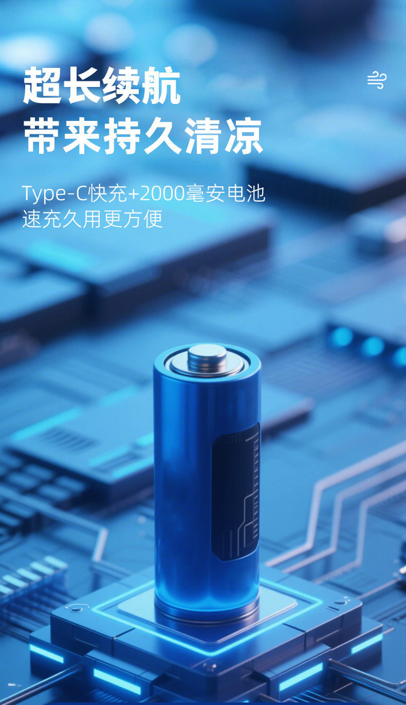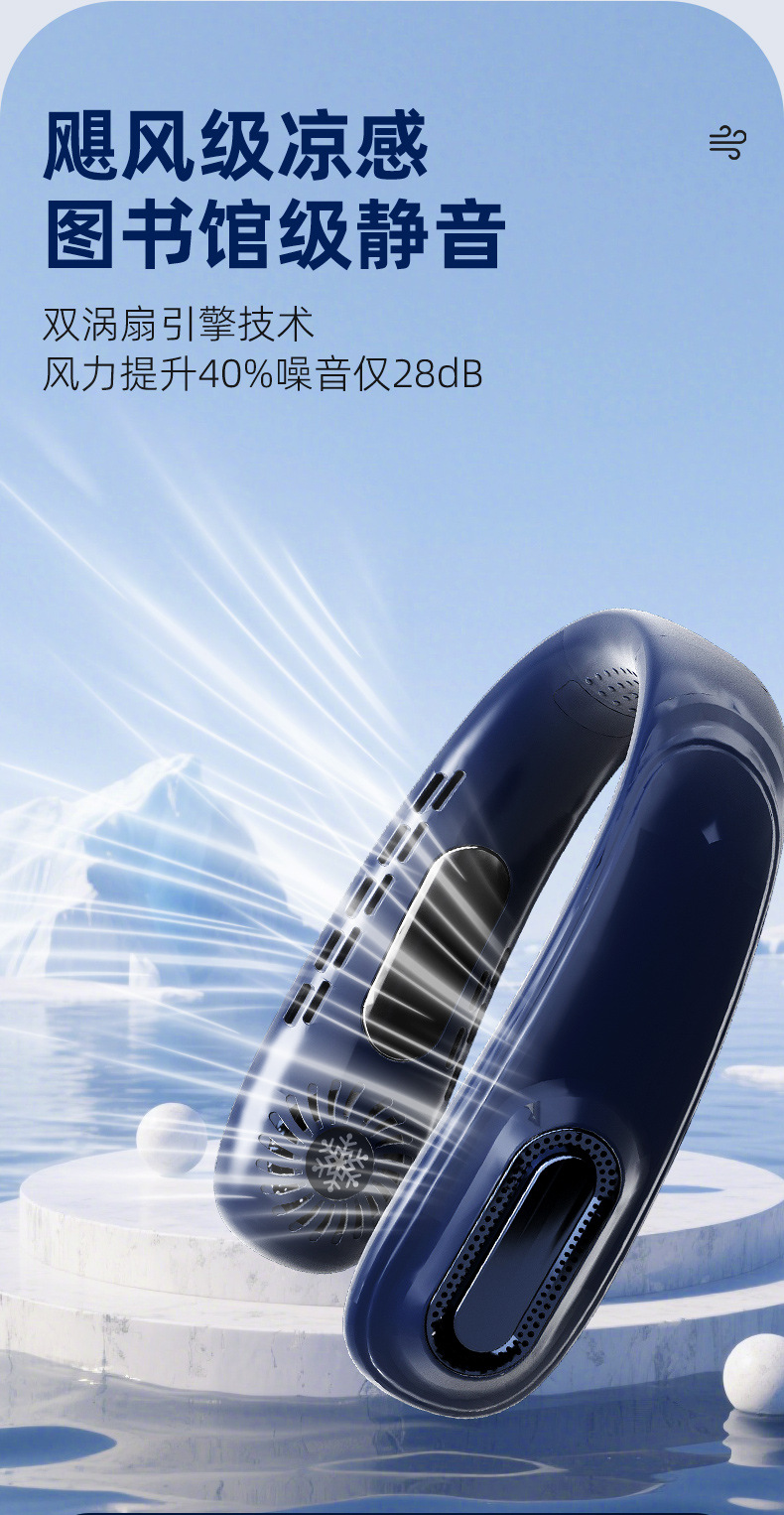 - 【冷萃蓝】上下出风+5档风力+超长续航