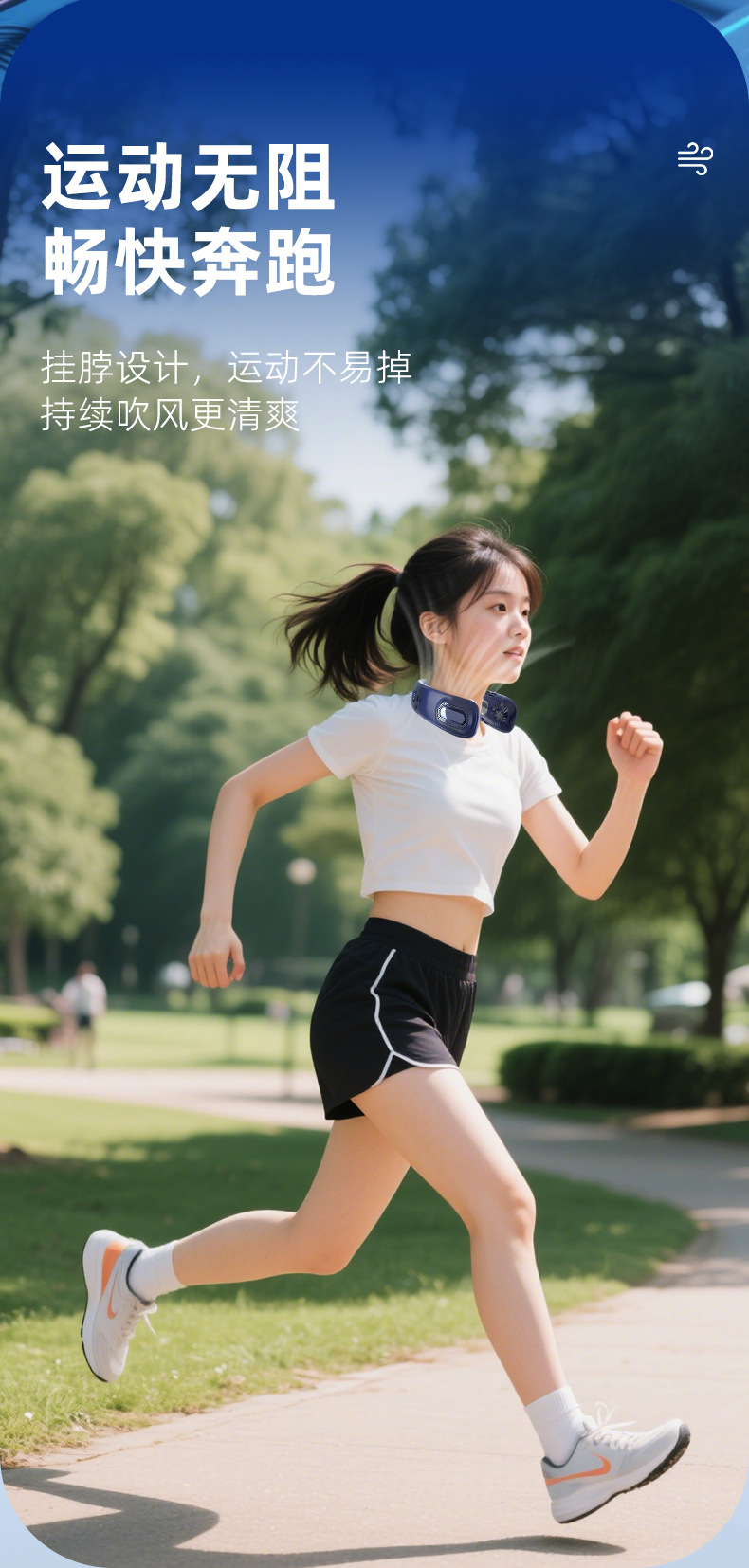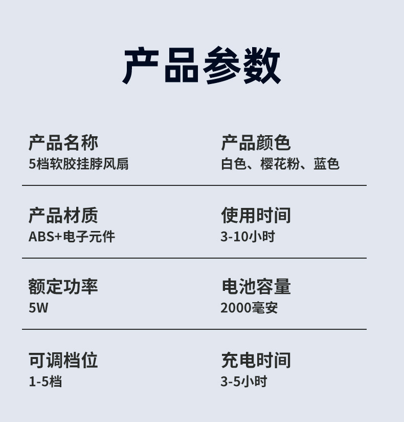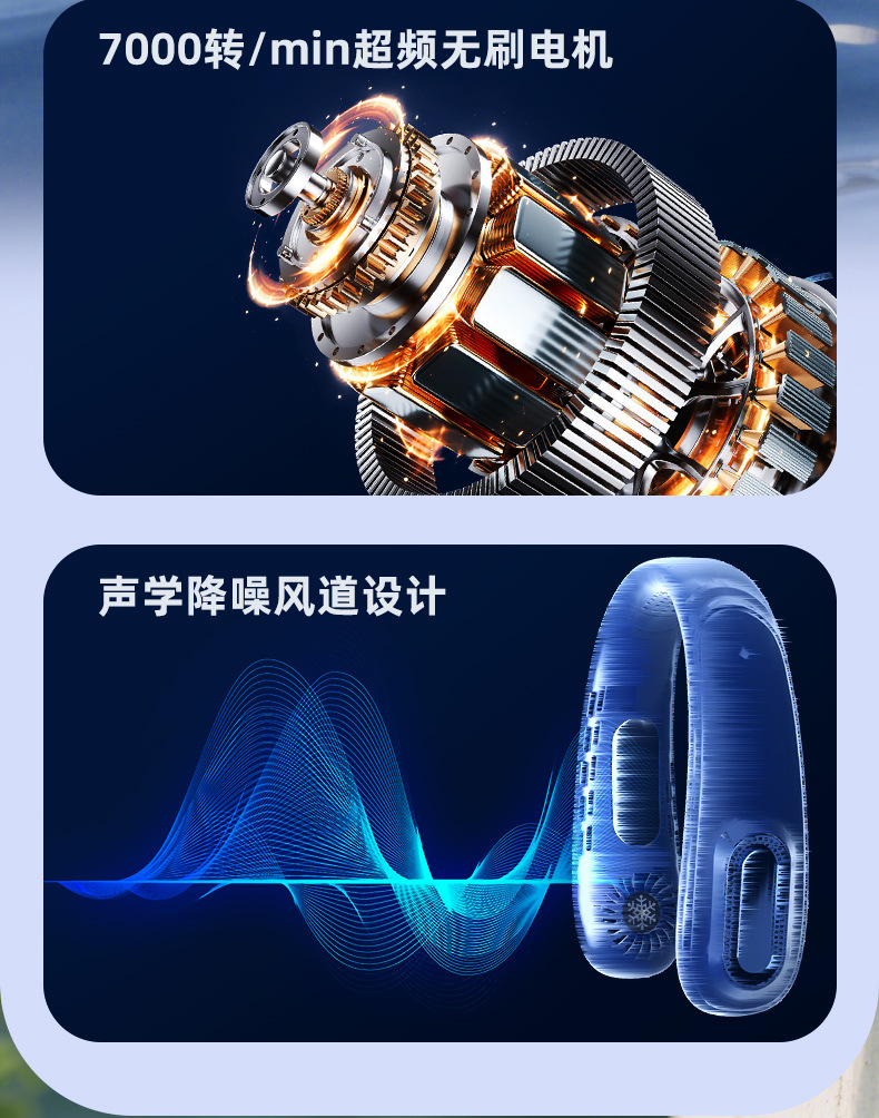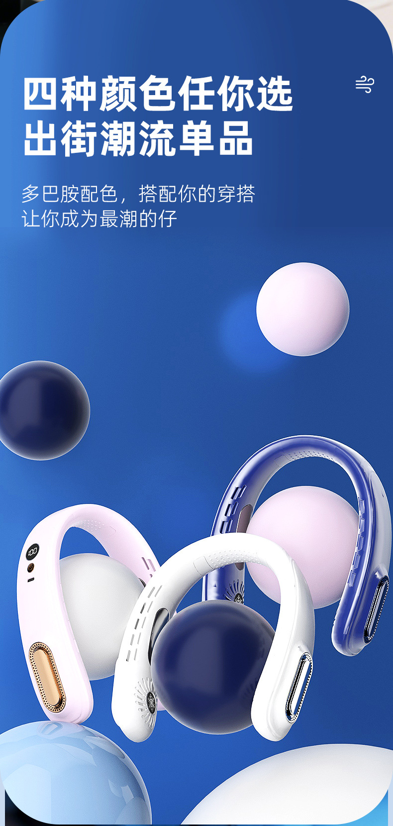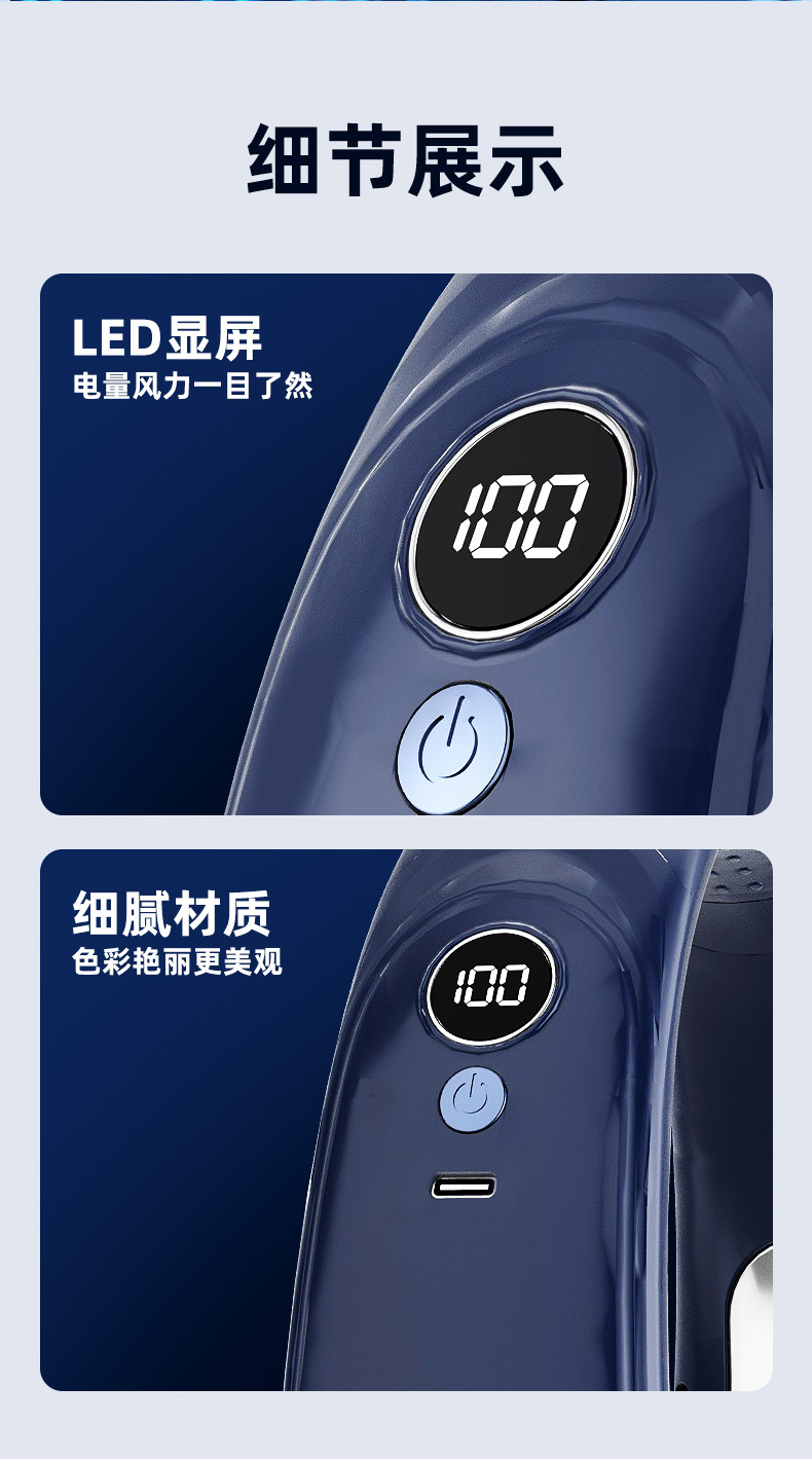 - 【冷萃蓝】上下出风+5档风力+超长续航