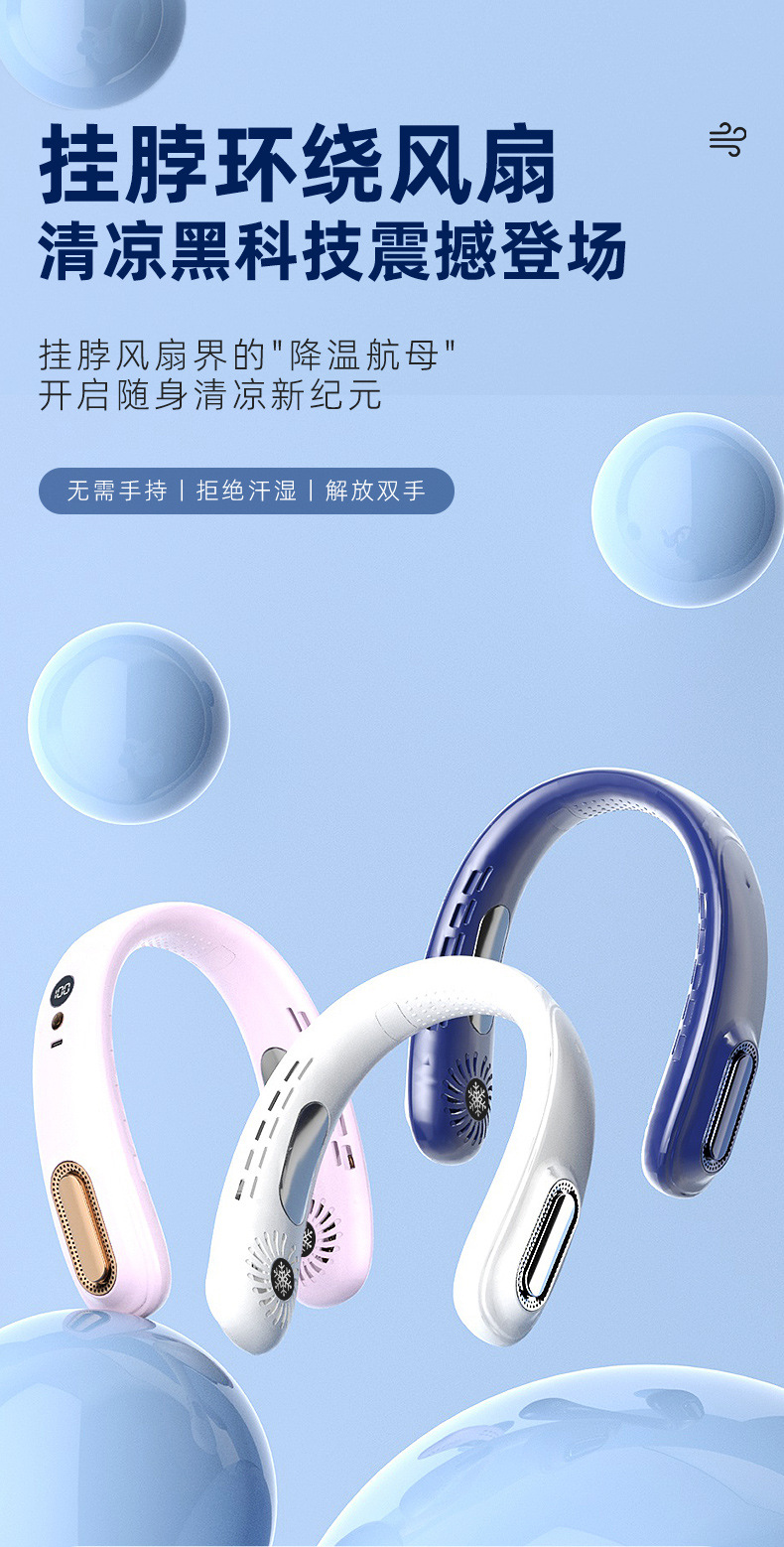 2025新款无叶挂脖风扇便捷随身小风扇usb充电挂脖颈式降温小风扇