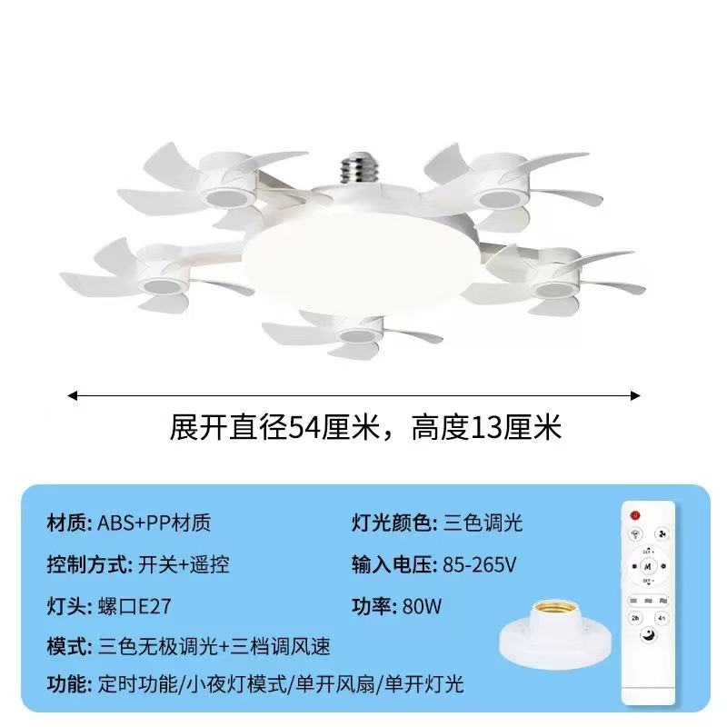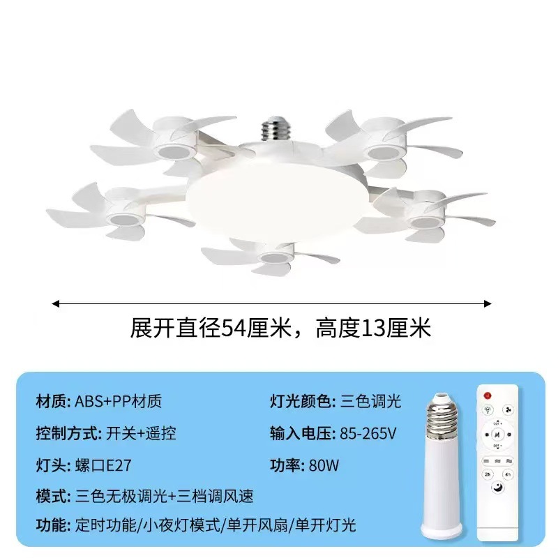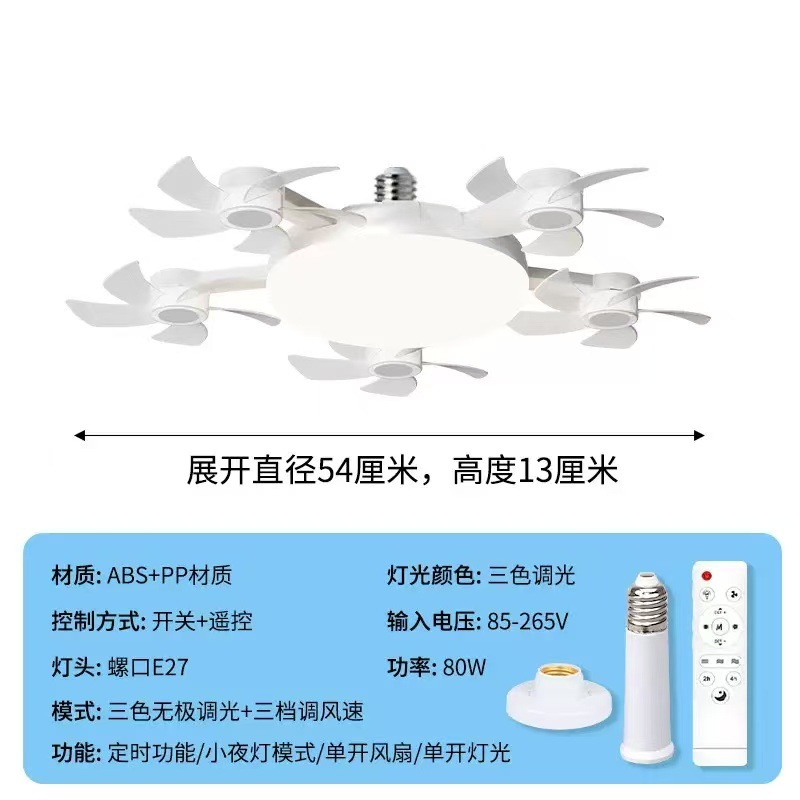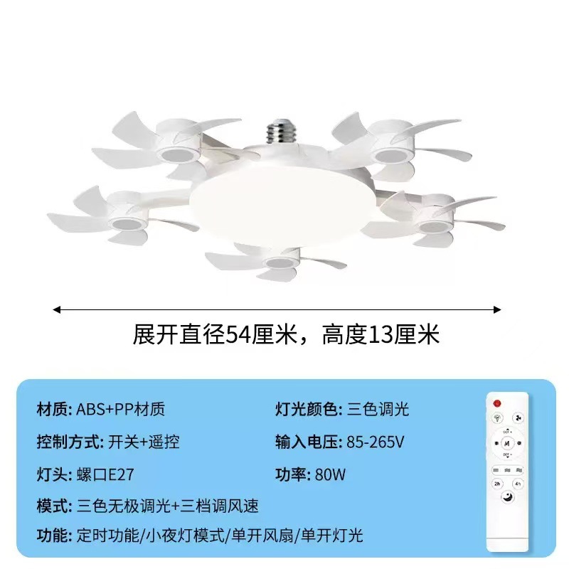 - 【80瓦五头风扇灯】-赠遥控+底座