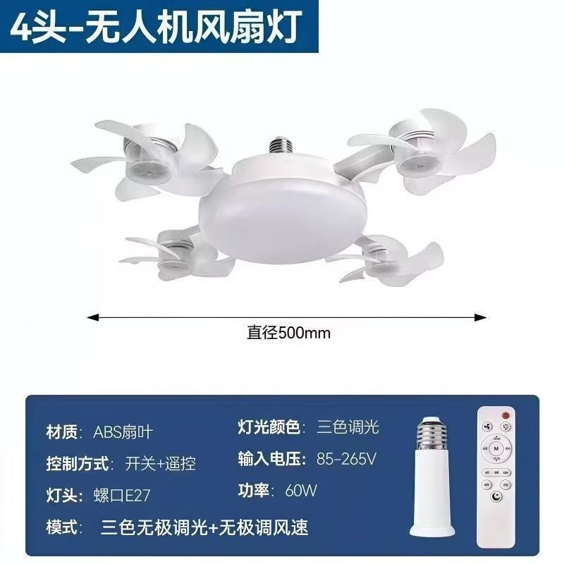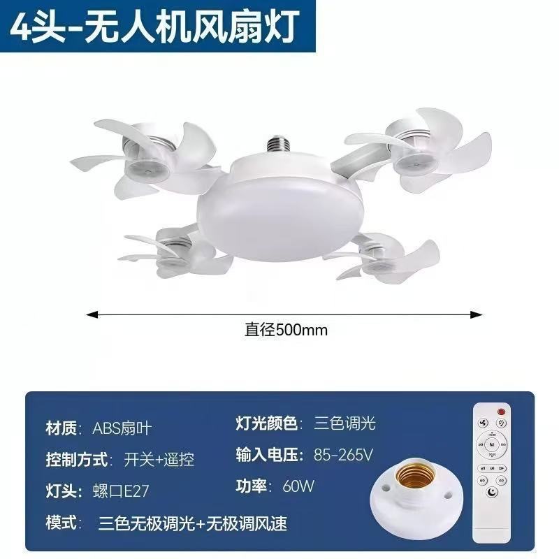 - 【60瓦四头风扇灯】-赠遥控+底座