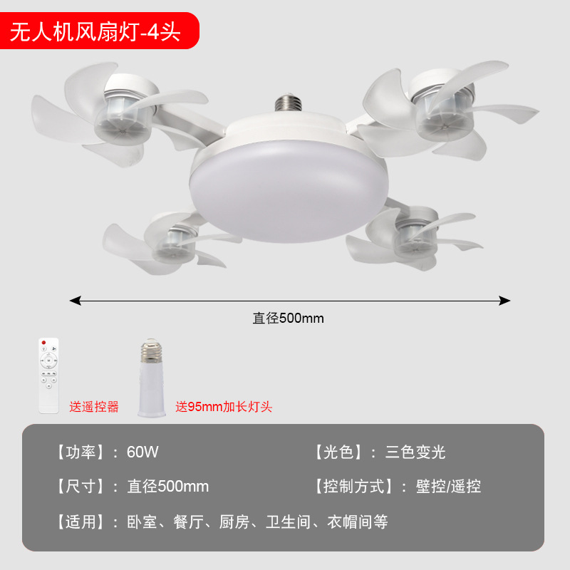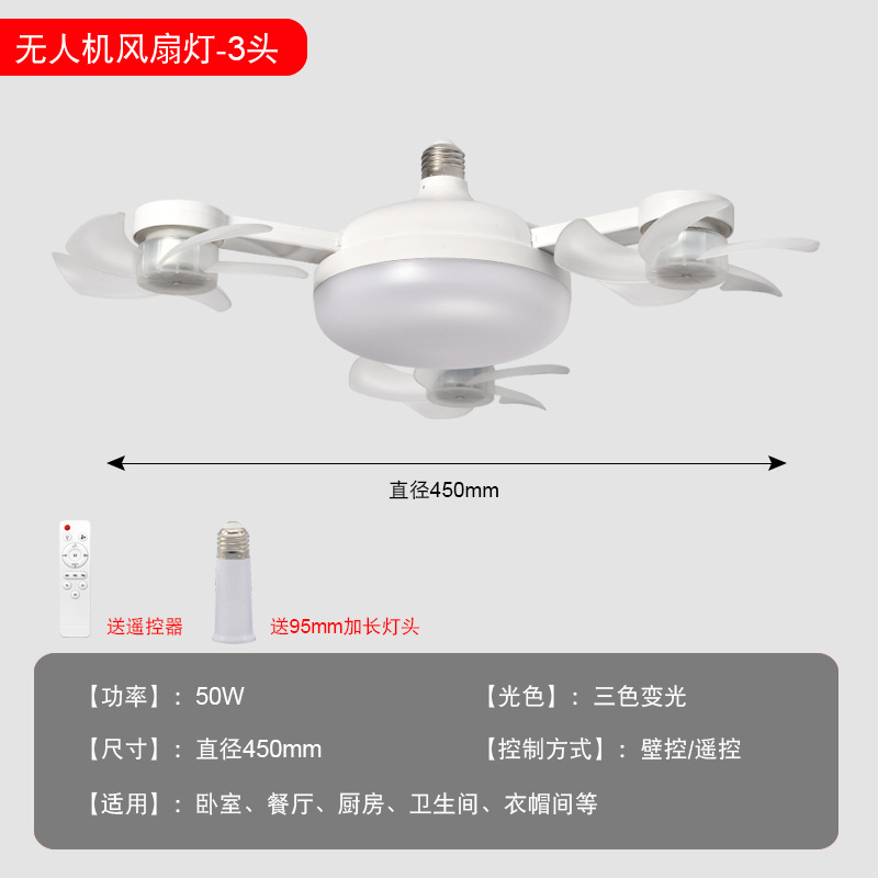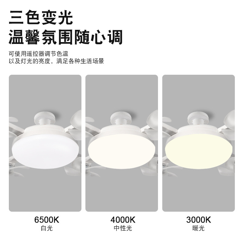 遥控LED直叶风扇灯E27螺口可拆卸扇叶卧室三色调光吸顶吊扇灯
