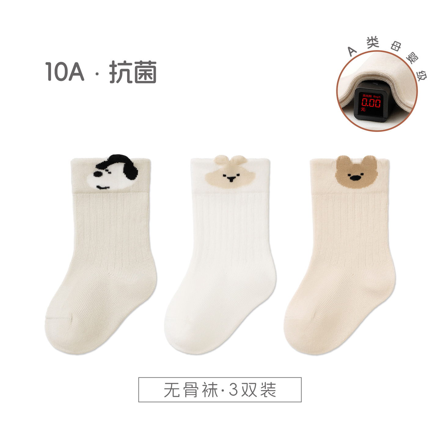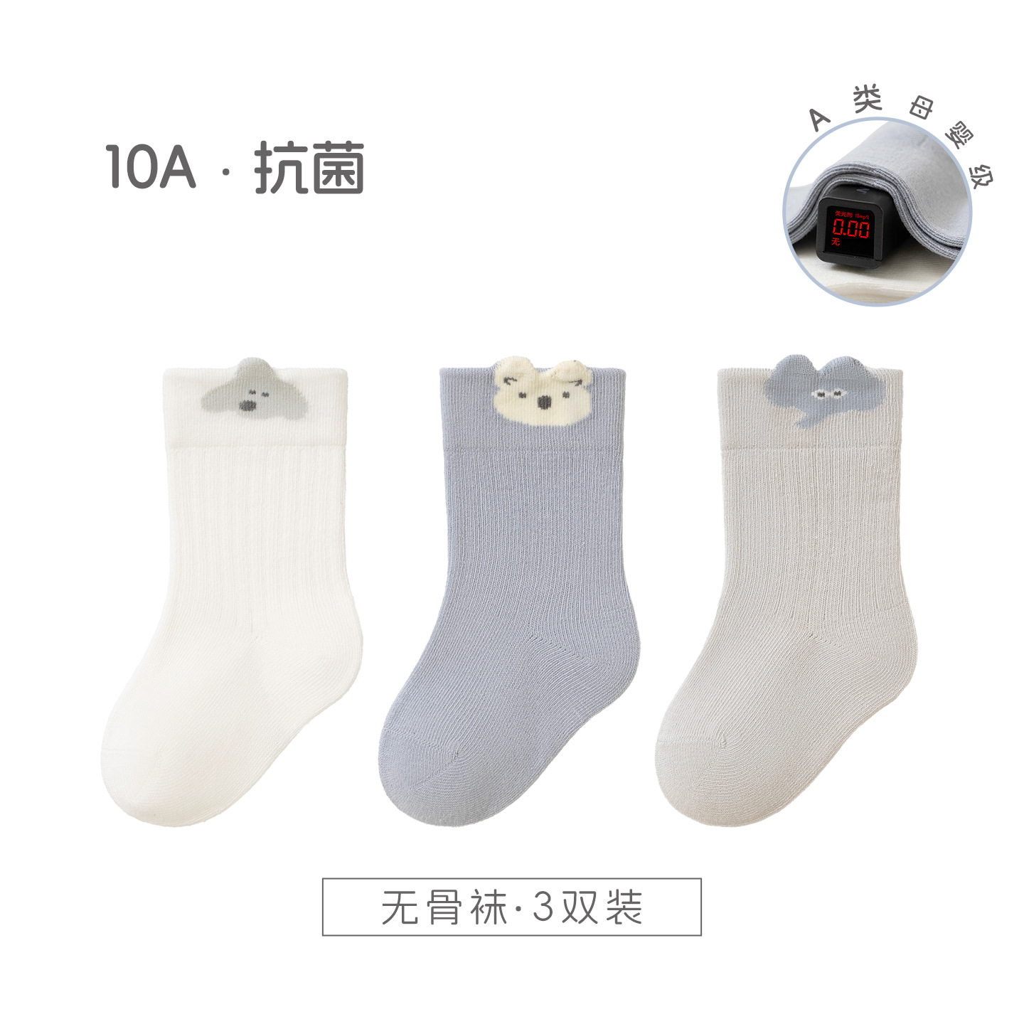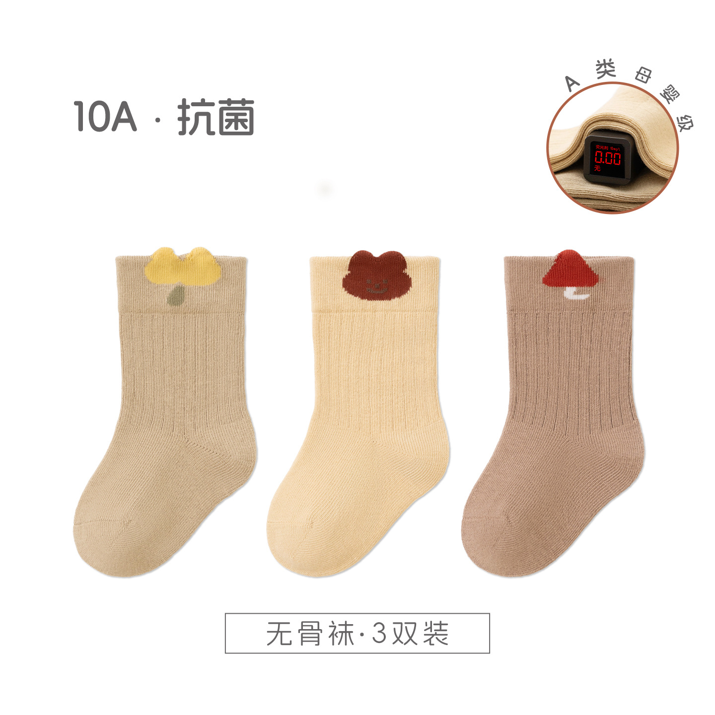 宝宝袜子秋季新品a类棉无骨纯色婴儿松罗口不勒袜透气 儿童中筒袜