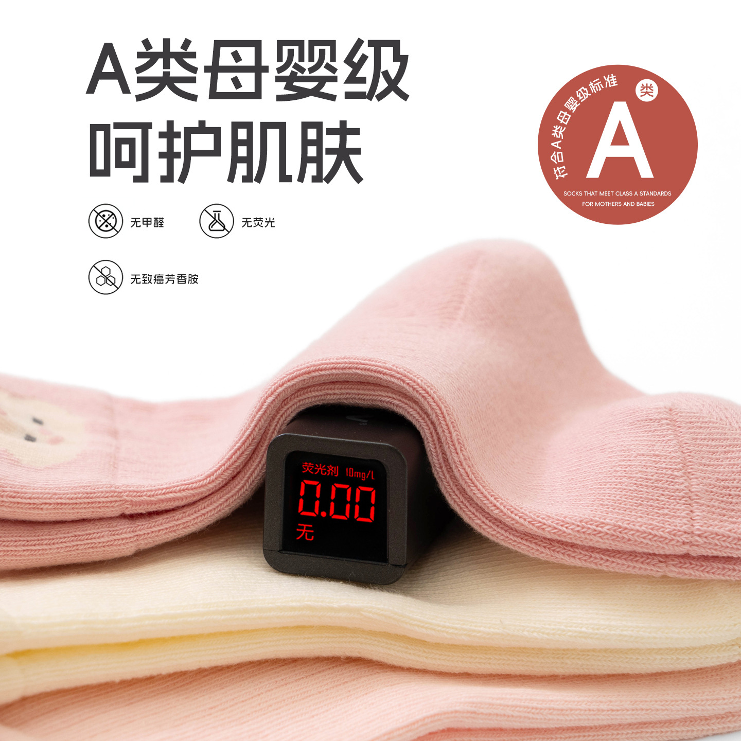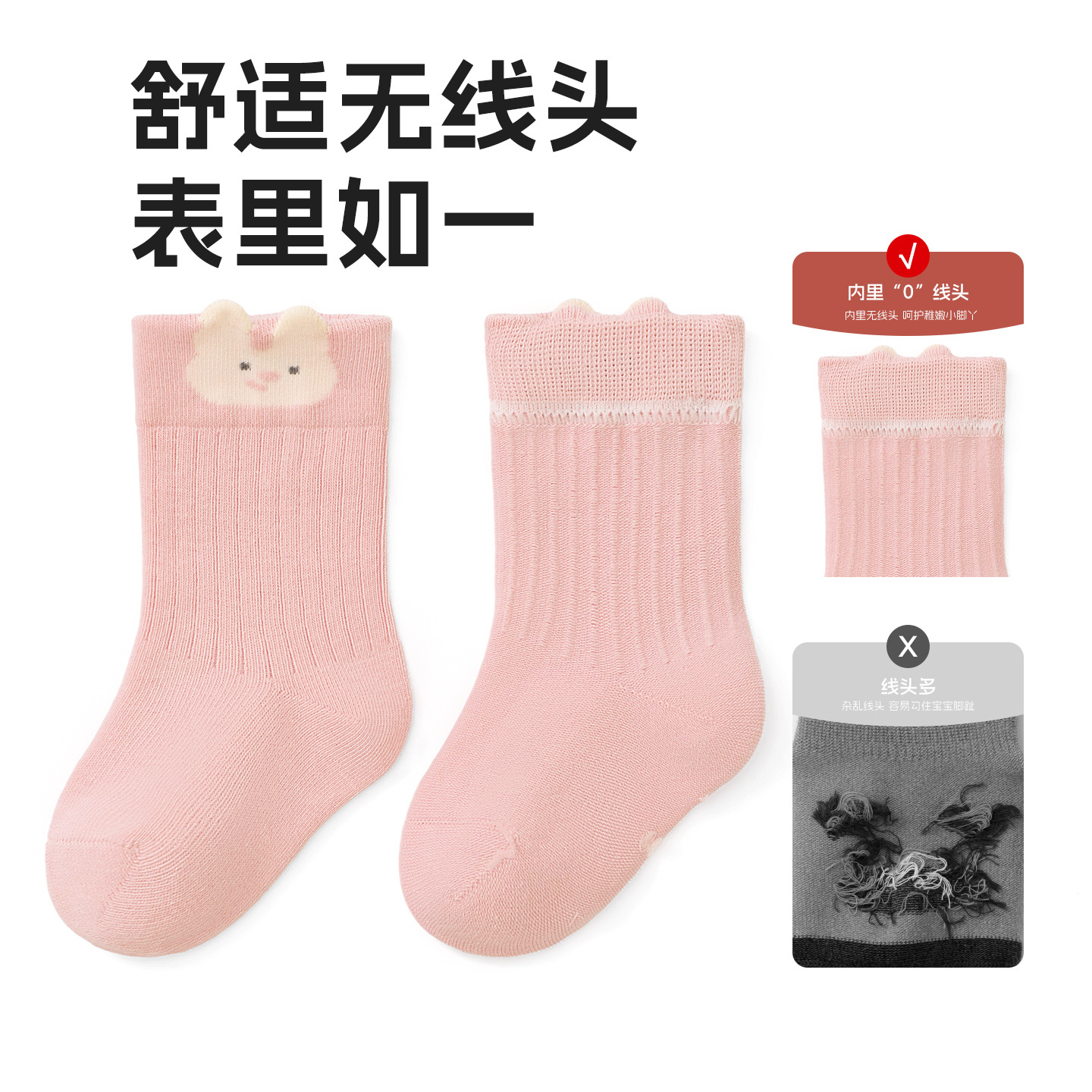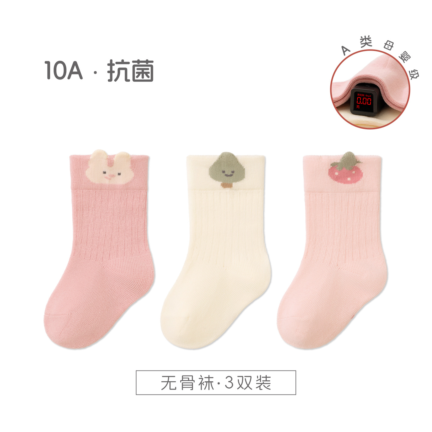 宝宝袜子秋季新品a类棉无骨纯色婴儿松罗口不勒袜透气 儿童中筒袜