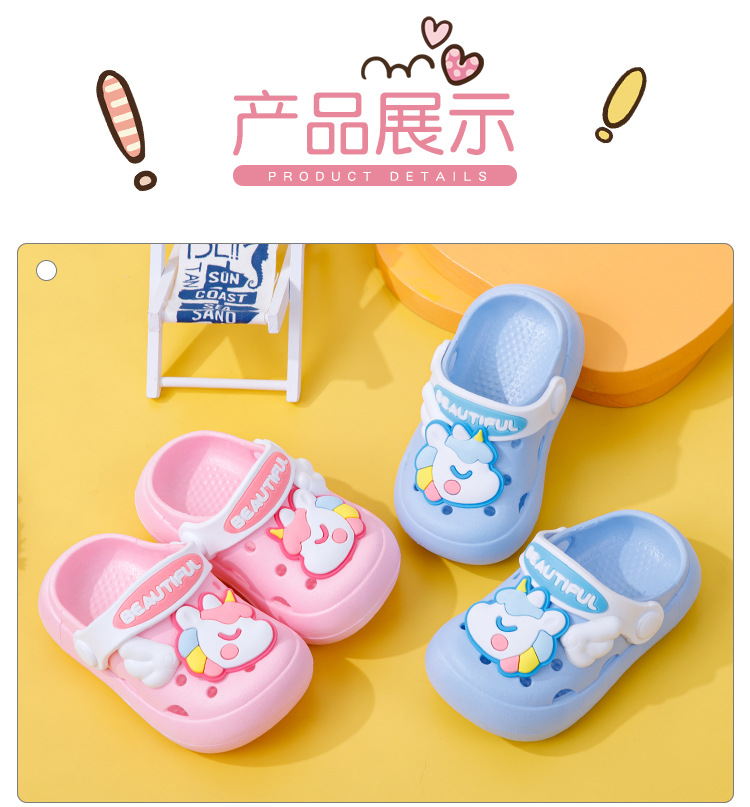 可爱防滑独角兽洞洞鞋夏季宝宝男童女童凉拖鞋夏卡通儿童拖鞋小孩