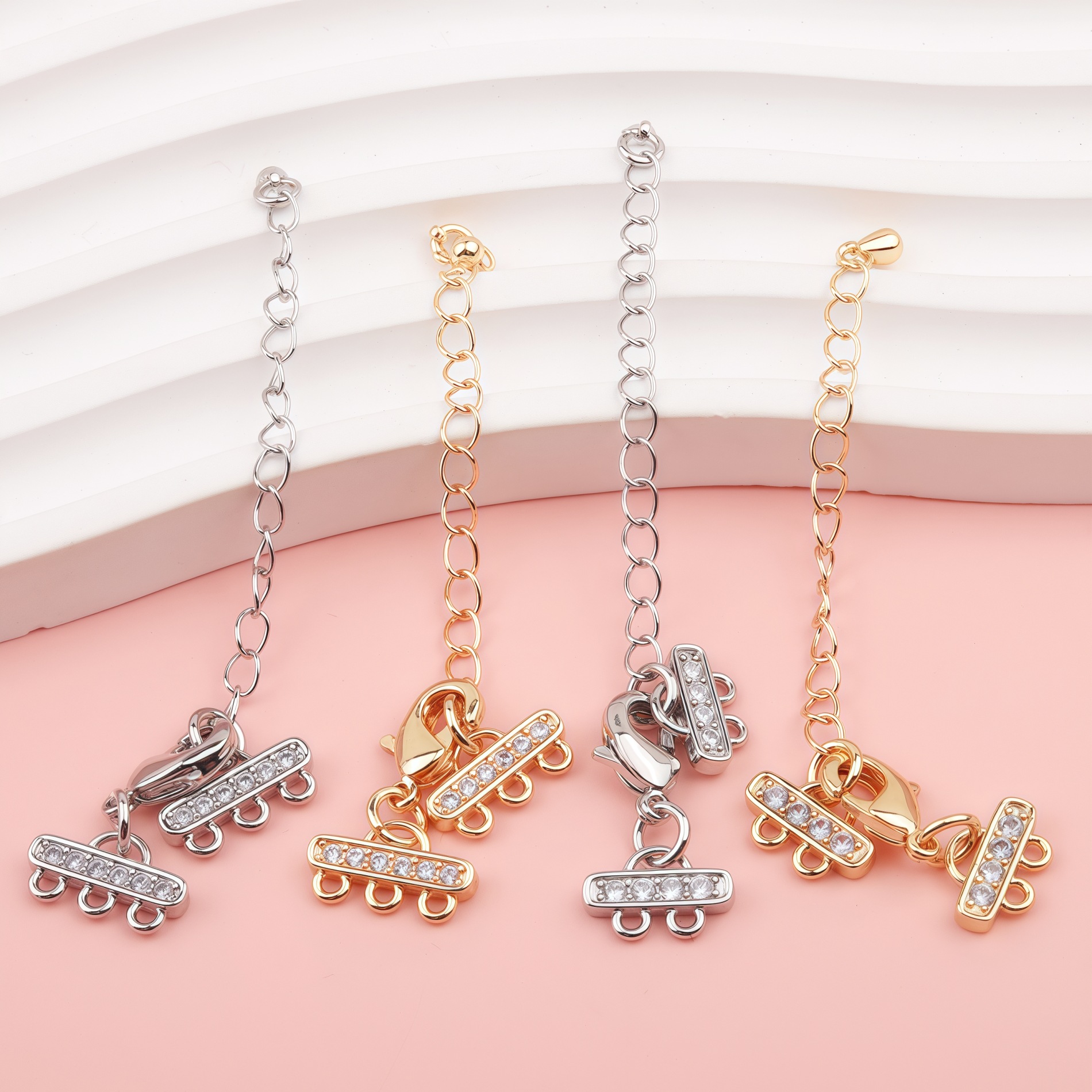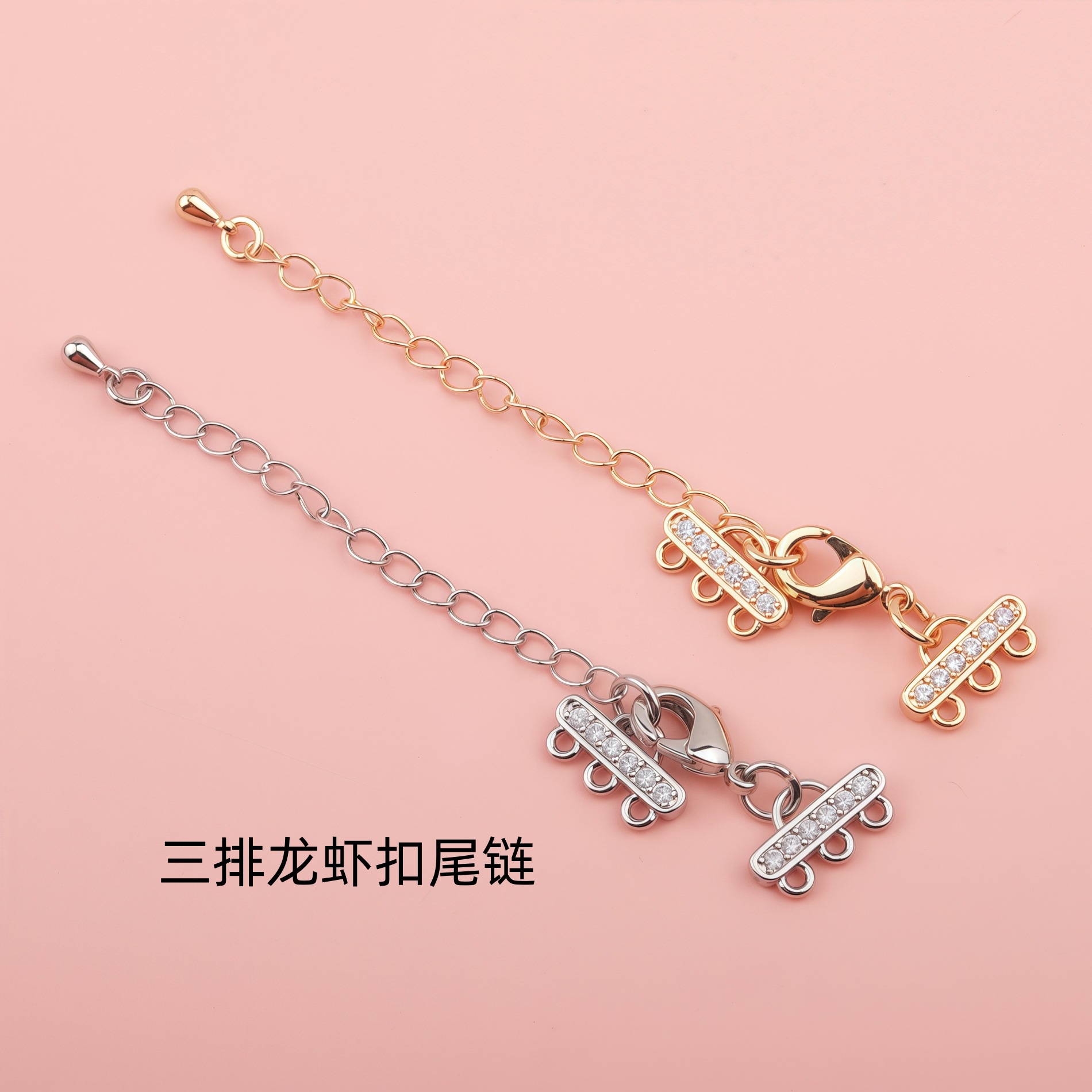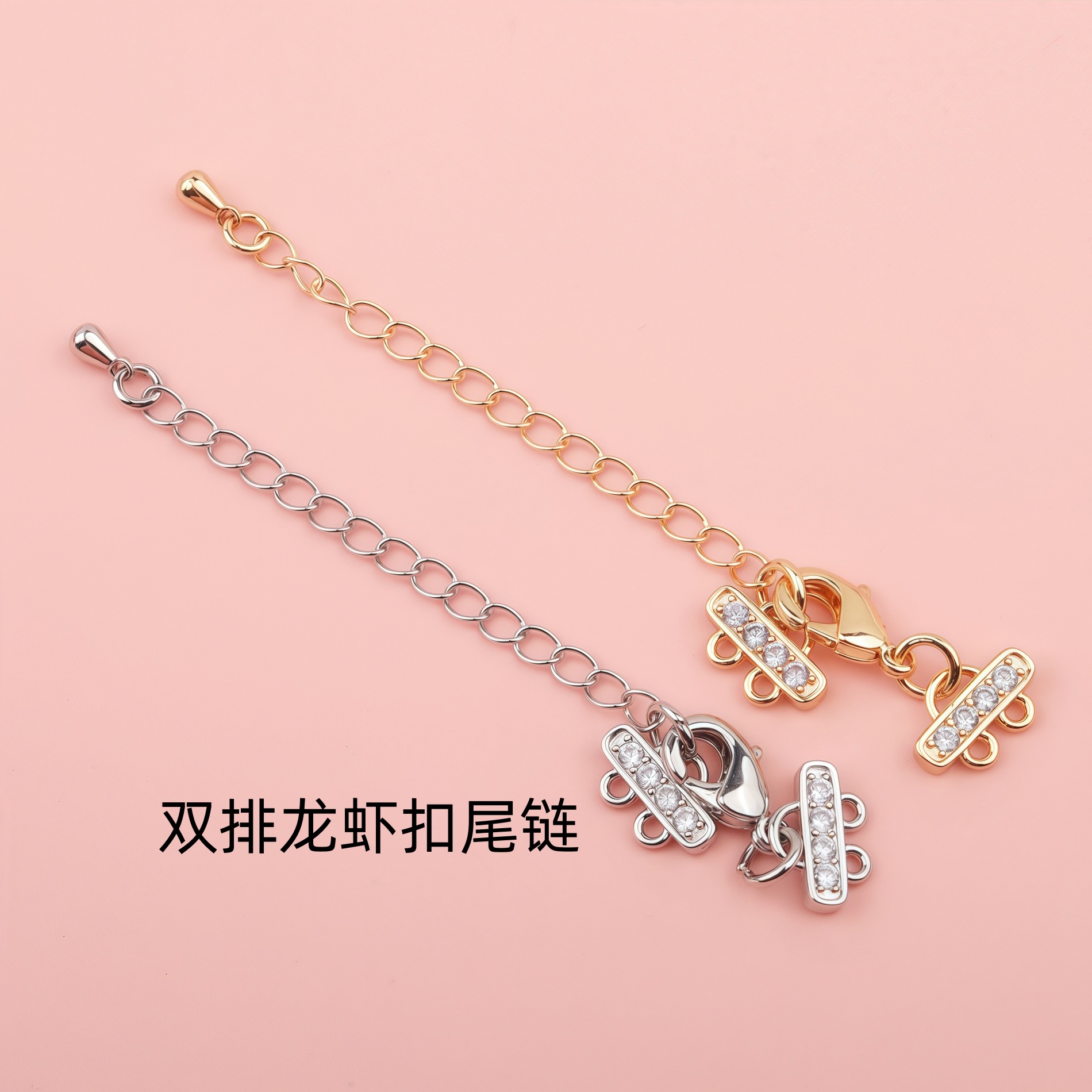 14K铜镀金高保色镶锆石三排双排项链收尾扣diy手链龙虾扣延长链