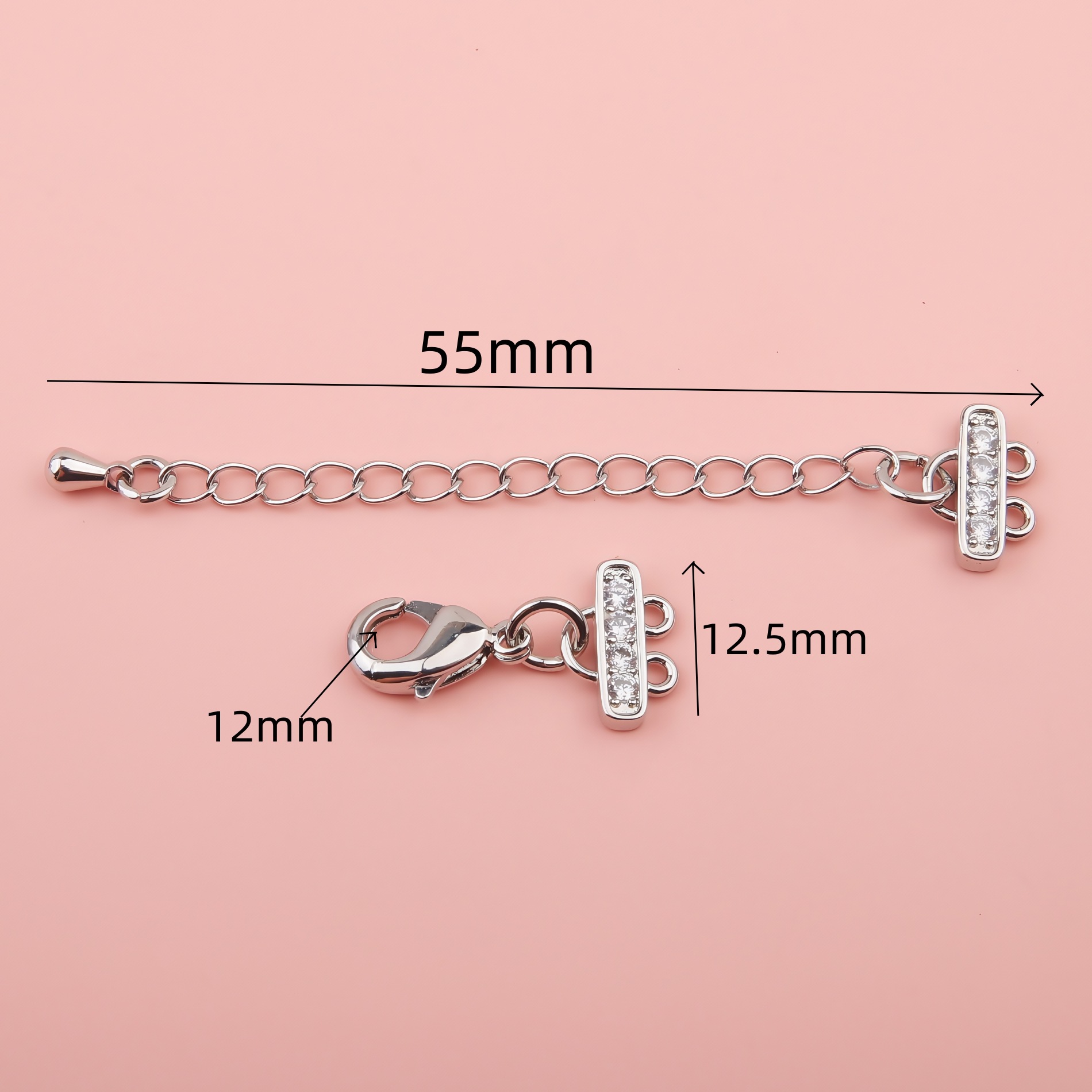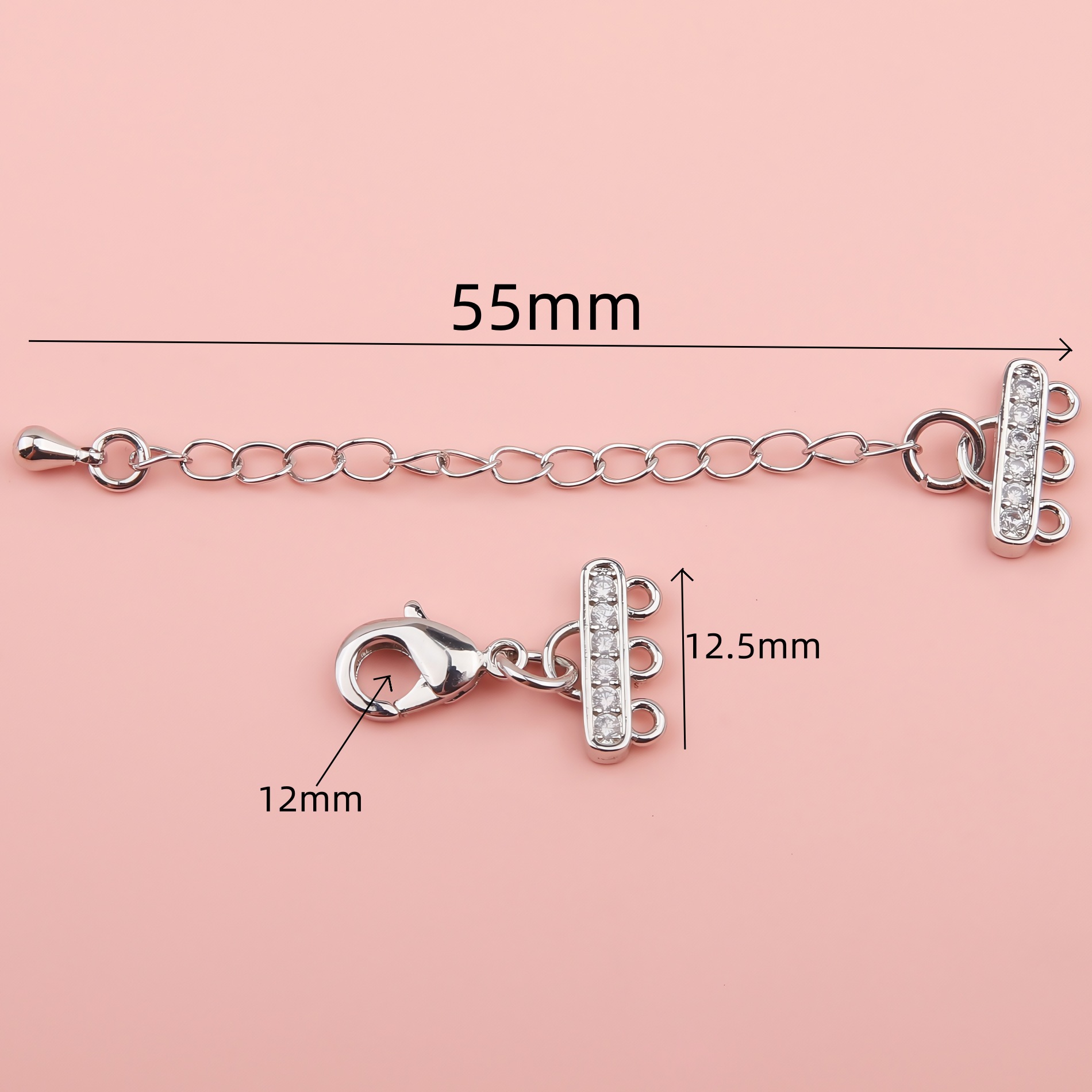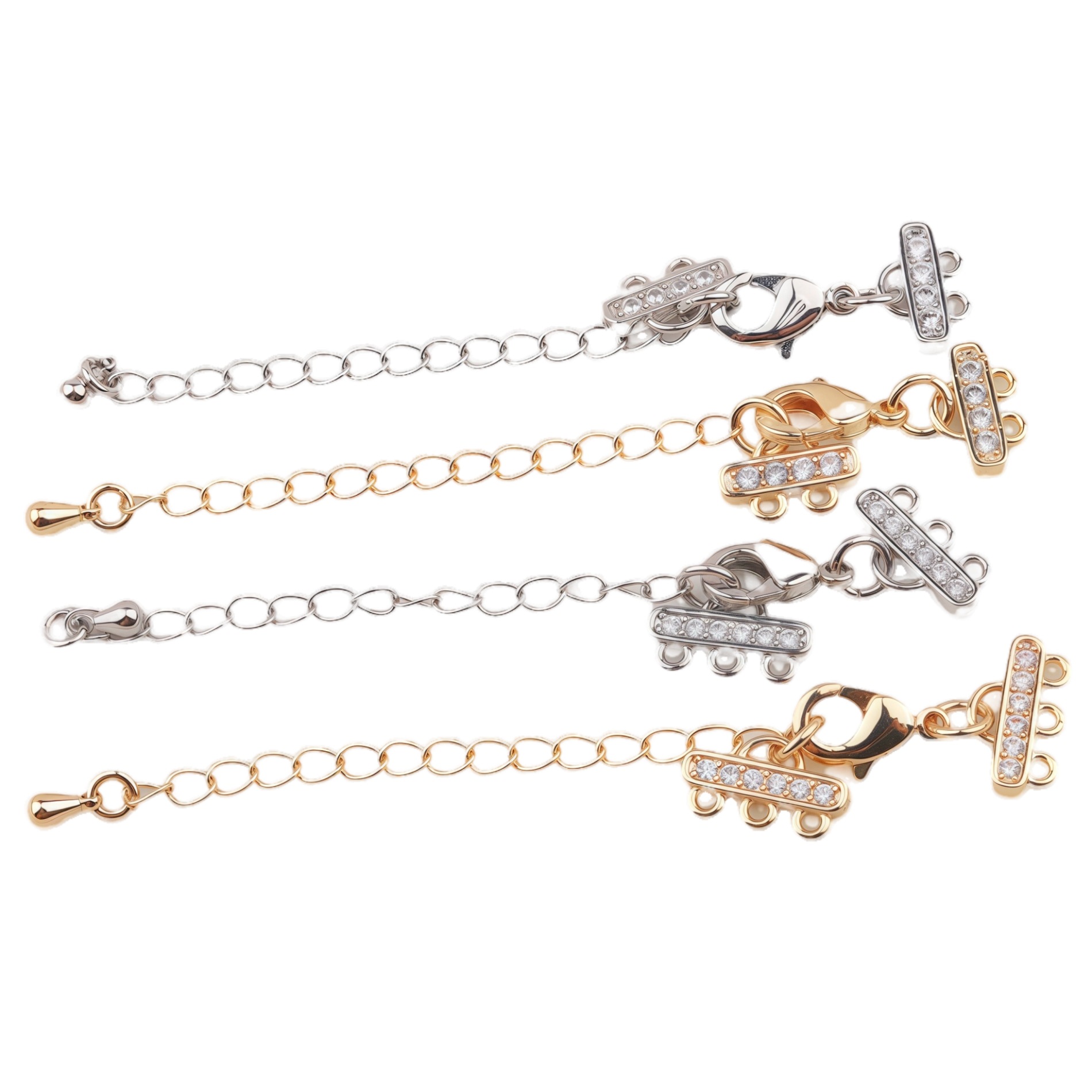 14K铜镀金高保色镶锆石三排双排项链收尾扣diy手链龙虾扣延长链