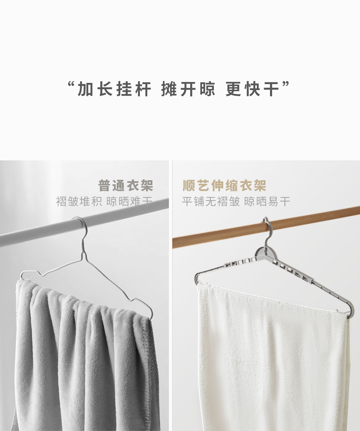 顺艺批发宿舍床单浴巾大衣架加长多功能家用衣架干湿多用伸缩衣架