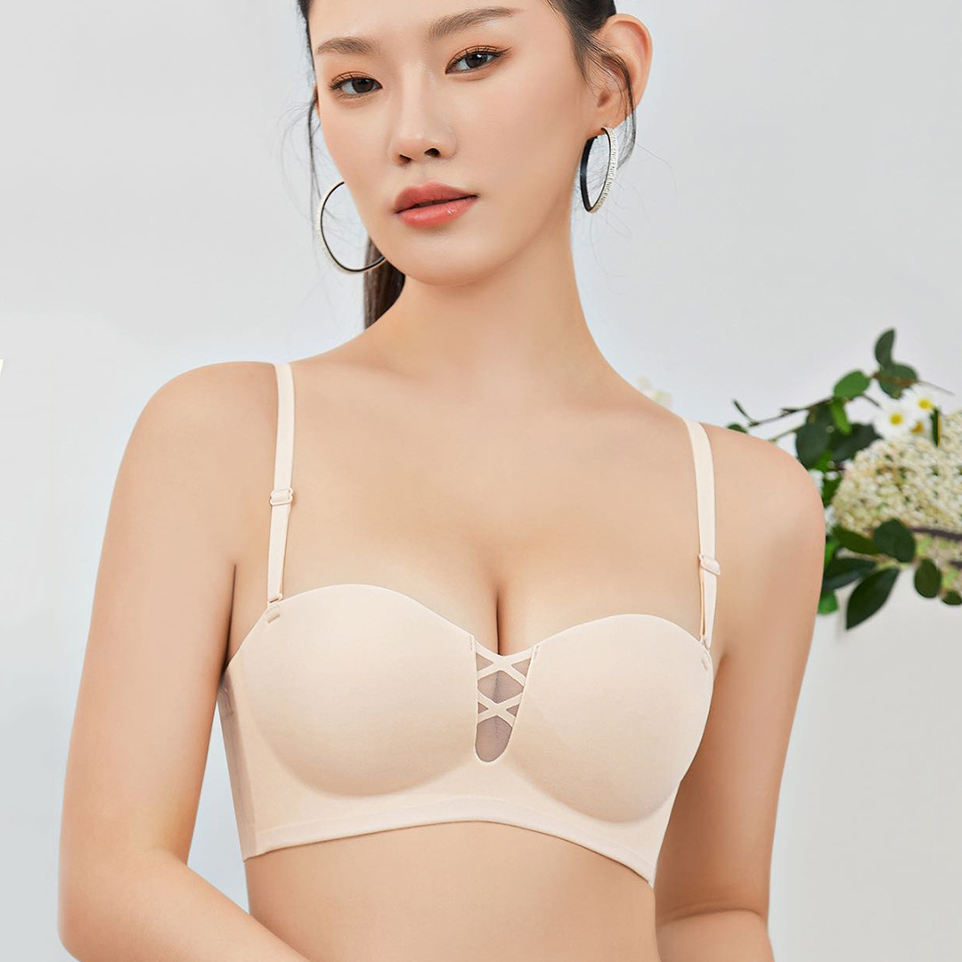 夏季防滑半杯内衣女小胸聚拢美背文胸无肩带中薄款胸罩防下垂Bra
