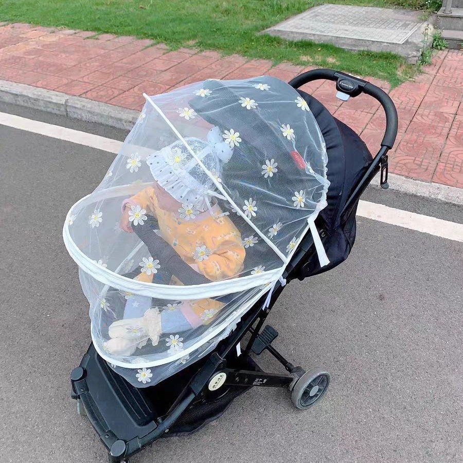 厂家婴儿车支架拉链绣花款蚊帐可折叠免安装手推车蚊蚊罩批发