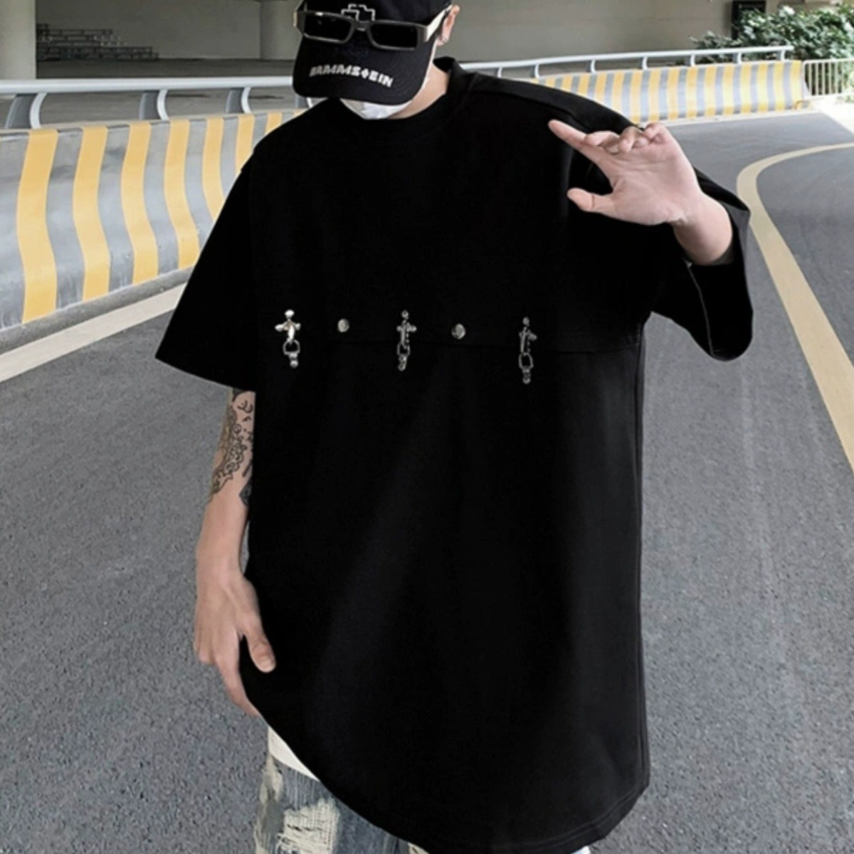 重磅短袖t恤男夏季新款小众设计感金属飞机扣美式潮牌五分袖体恤