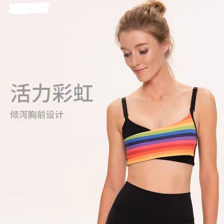 跨境外贸欧美彩虹撞色性感聚拢内衣运动文胸背心瑜伽服套装健身裤