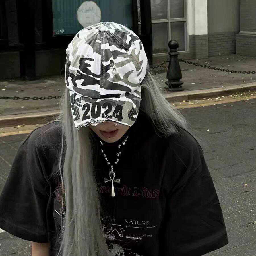断帽檐设计大头围街头迷彩棒球帽子女情侣辣妹嘻哈百搭鸭舌帽男潮