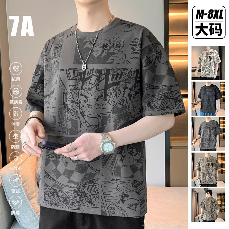 涂鸦短袖男2025夏季T恤设计感美式宽松体恤衫ins落肩五分半袖大码