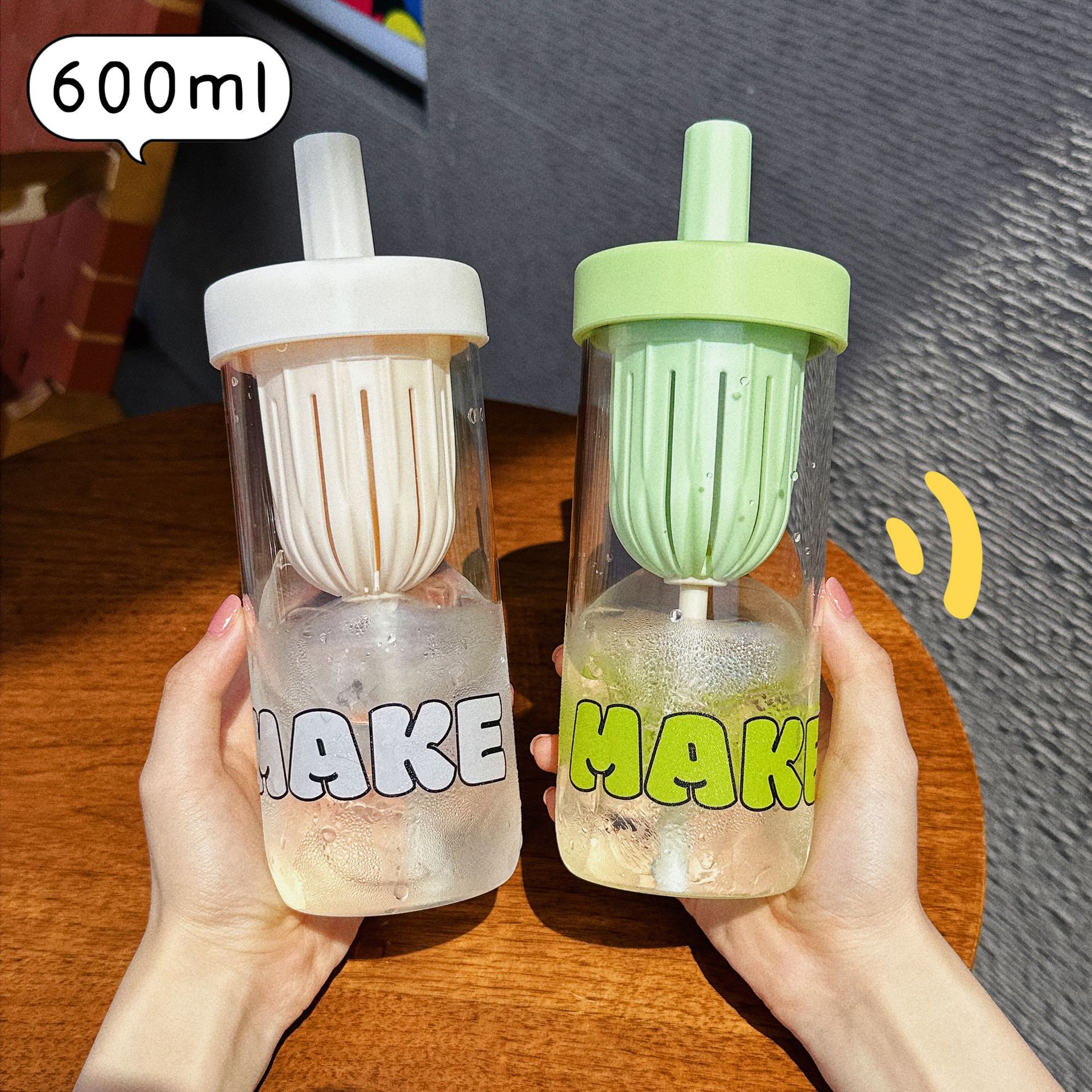 简约花茶水杯夏季情侣办公泡茶吸管杯学生便携茶水分离玻璃杯