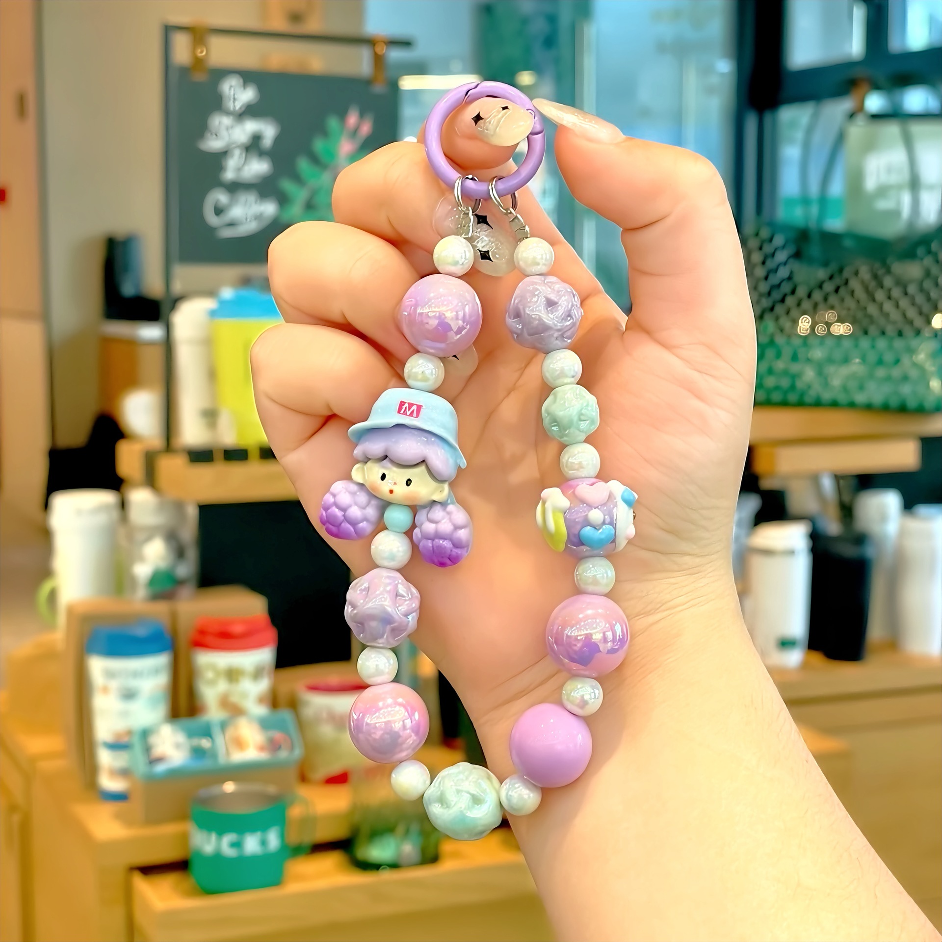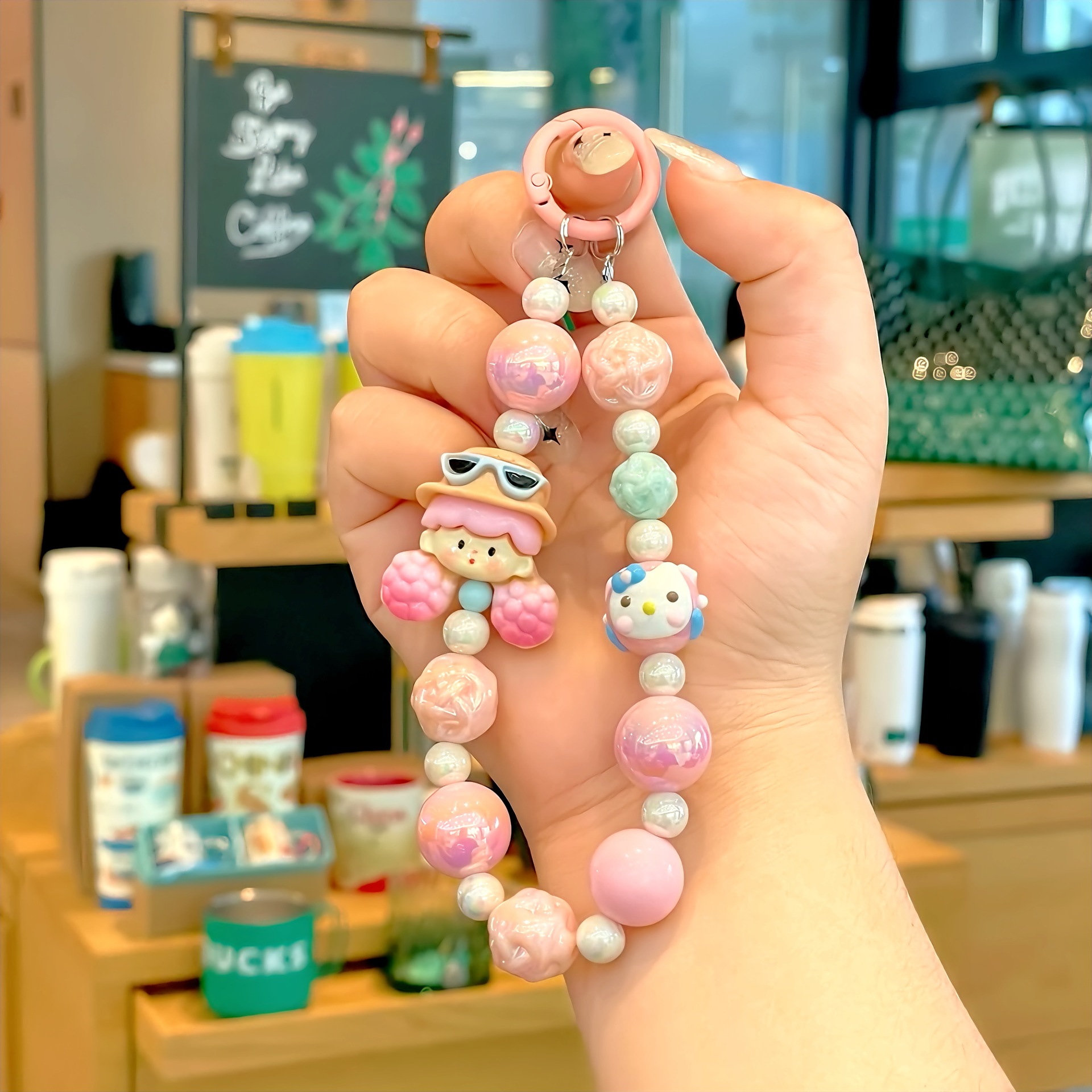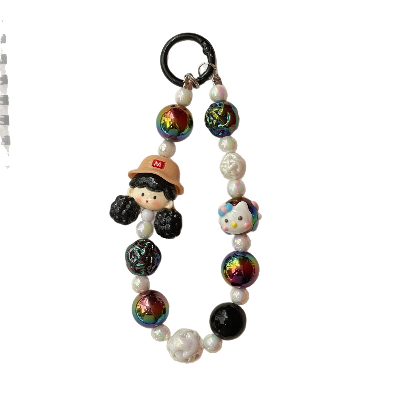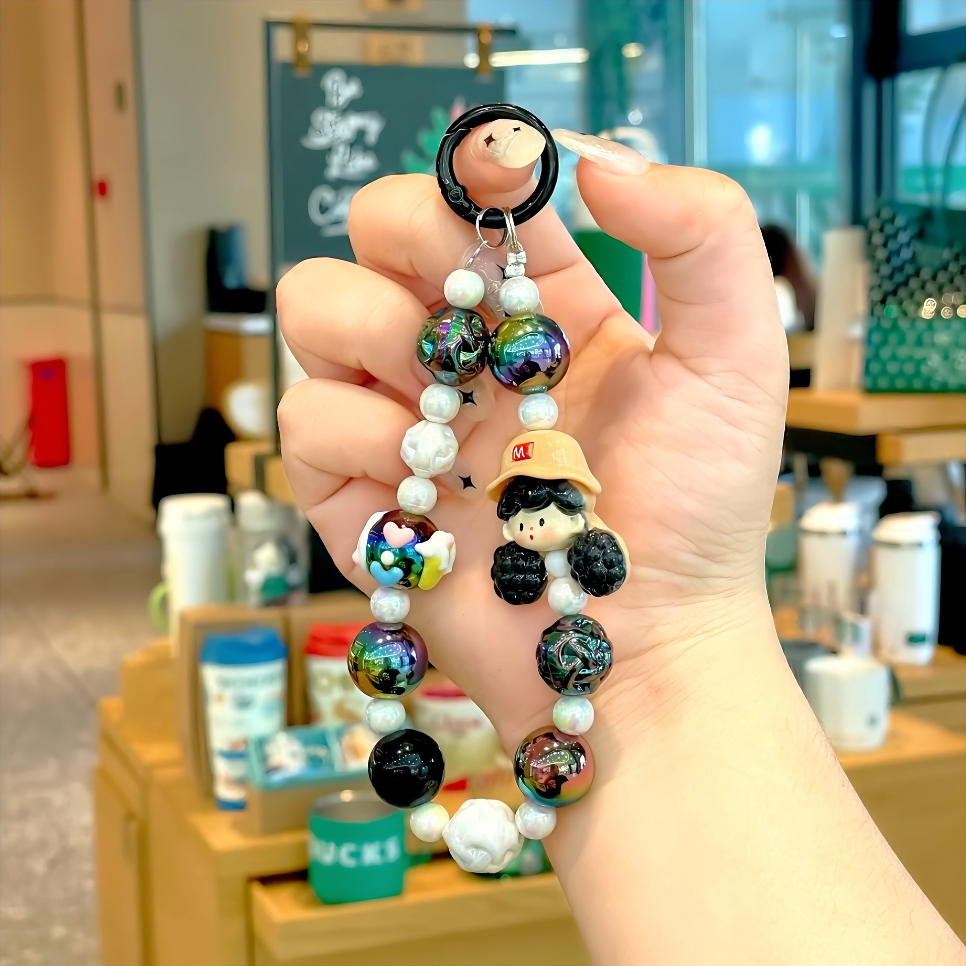 新款爆米花卡通手机链手绘珠串珠钥匙扣包包配饰手机挂件挂饰挂绳