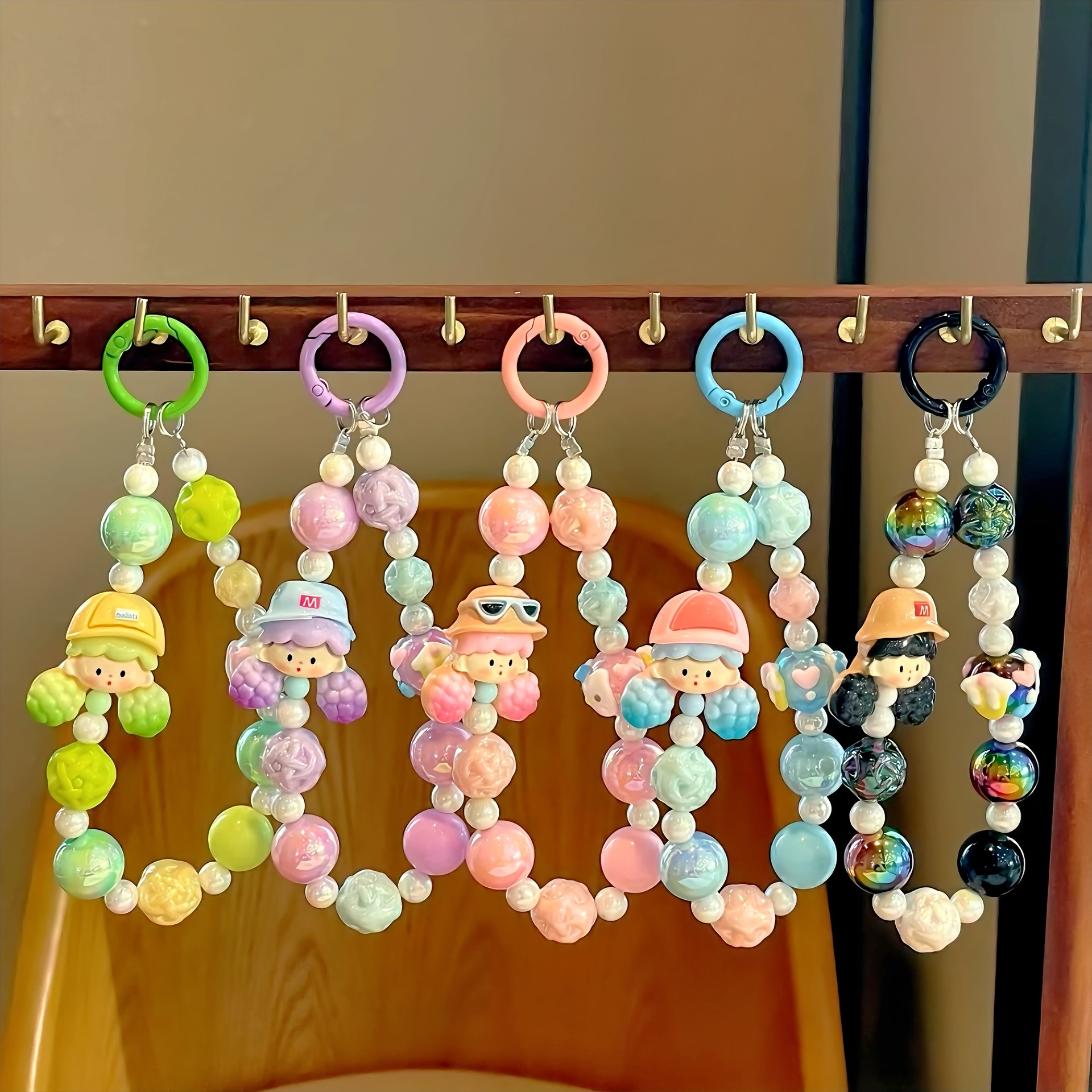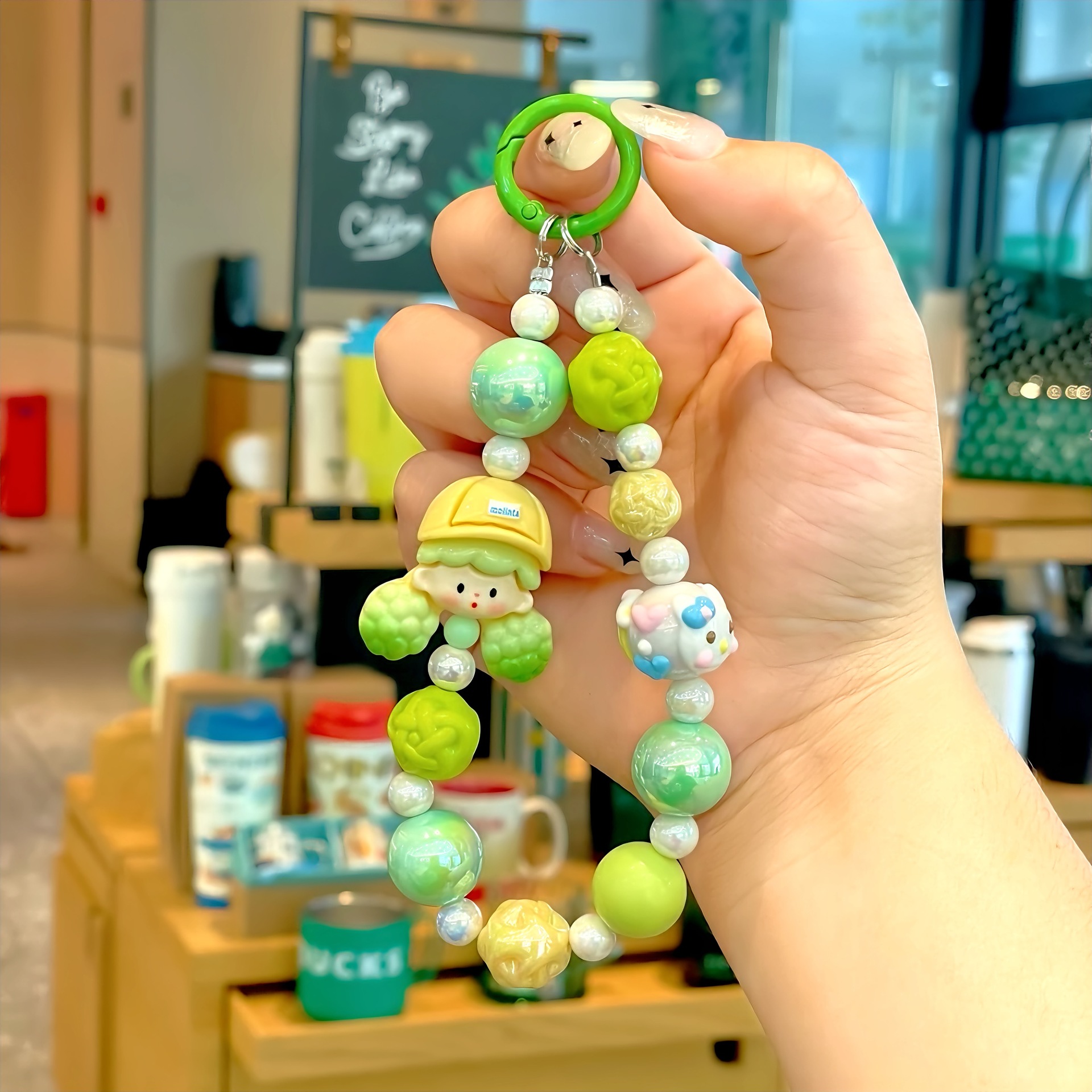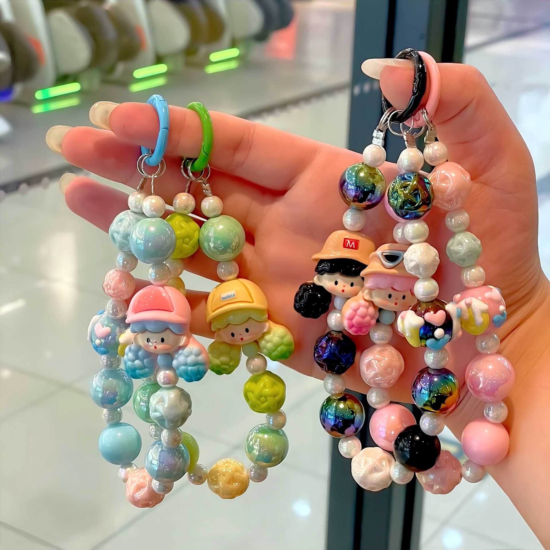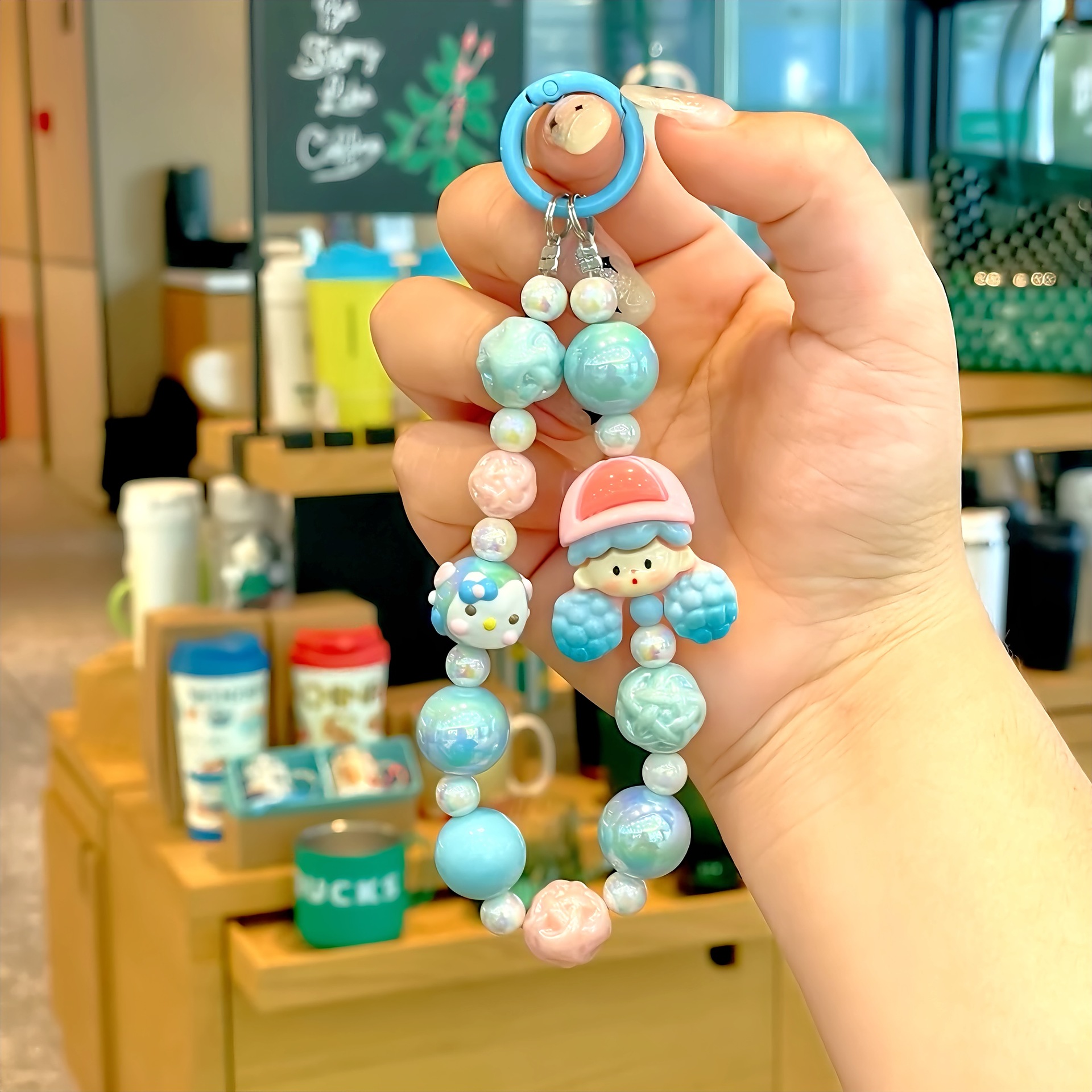 新款爆米花卡通手机链手绘珠串珠钥匙扣包包配饰手机挂件挂饰挂绳