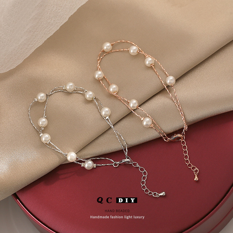 小众高级感珍珠手链女韩版简约百搭个性钛钢不掉色多层手镯饰品