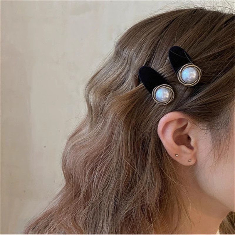 韩国复古丝绒珍珠水钻发夹夹子头饰侧边高级感小巧精致发卡鸭嘴夹
