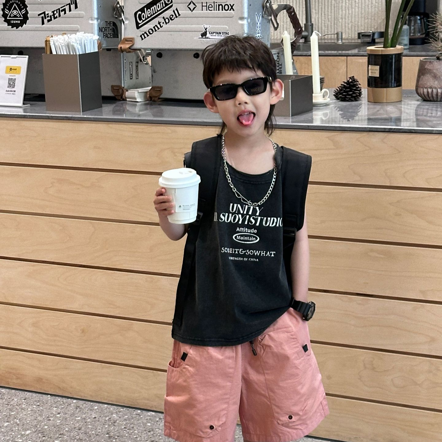 泰如夏季新款韩版男童潮酷字母炒洗百搭无袖上衣儿童背心潮