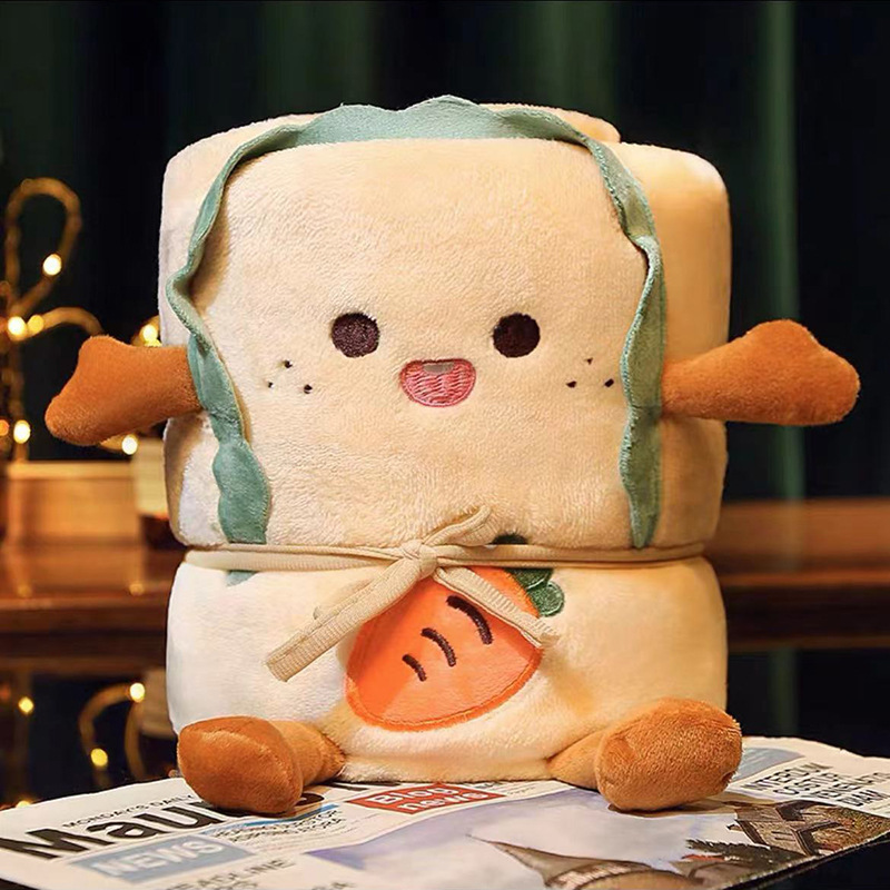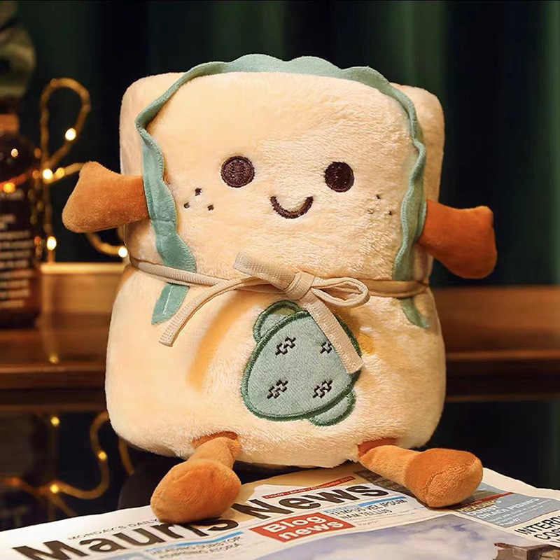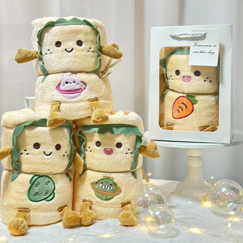 办公室午睡毯卡通可爱空调被小毛毯披肩盖毯薄二合一收纳夏天通用