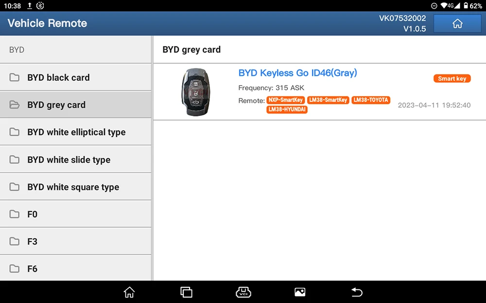 1. Enter the [Vehicle Remote] menu and select the corresponding smart key model to generate.