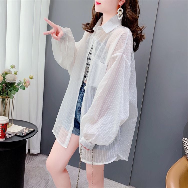 跨境夏季韩版大码女装中长款薄款开衫防晒衬衫新款上衣外套雪纺衫