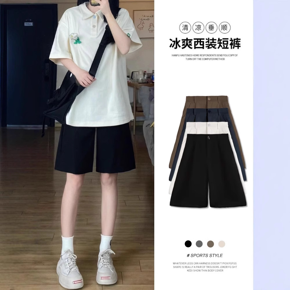黑色西装短裤女2025新款夏季薄款高腰a字阔腿宽松休闲冰丝五分裤