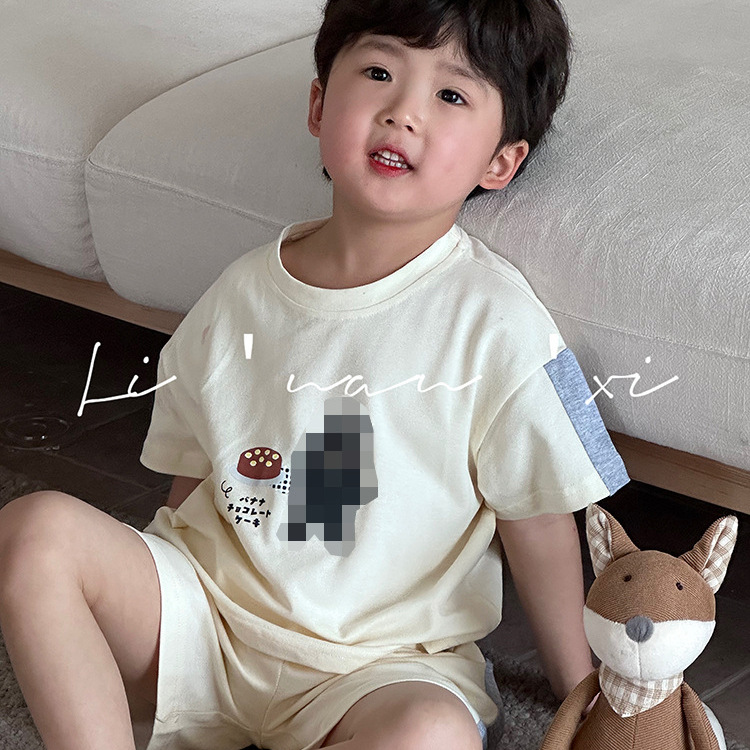 24夏新款男童套装男女童针织撞色珠地短袖+短裤2两套宝宝可爱上下
