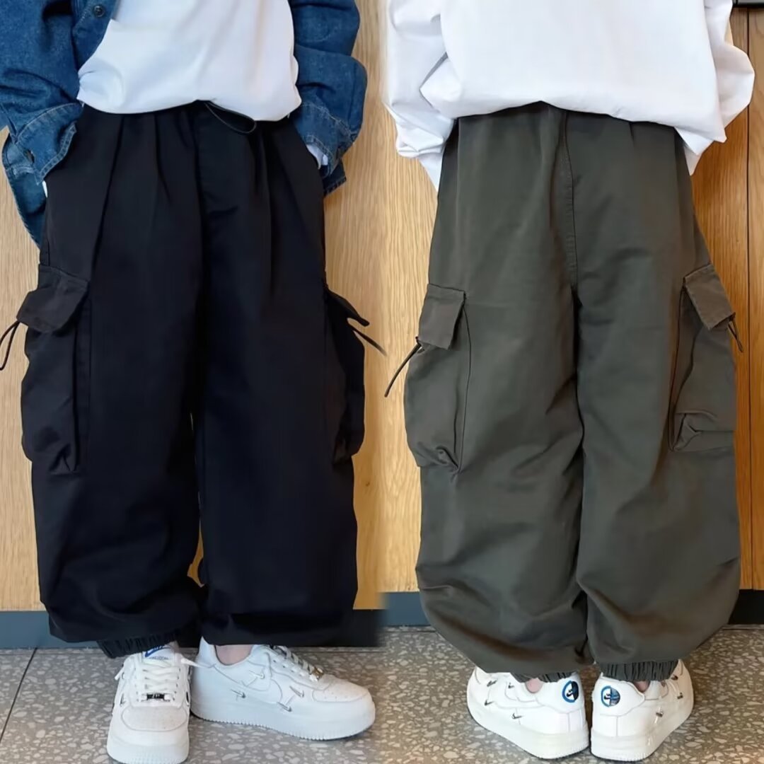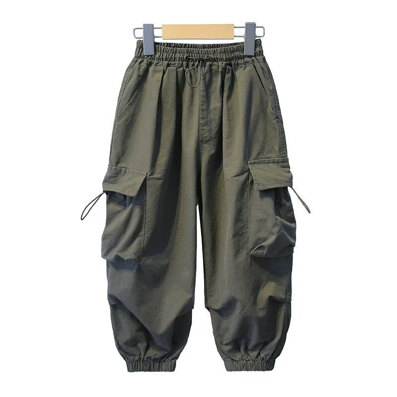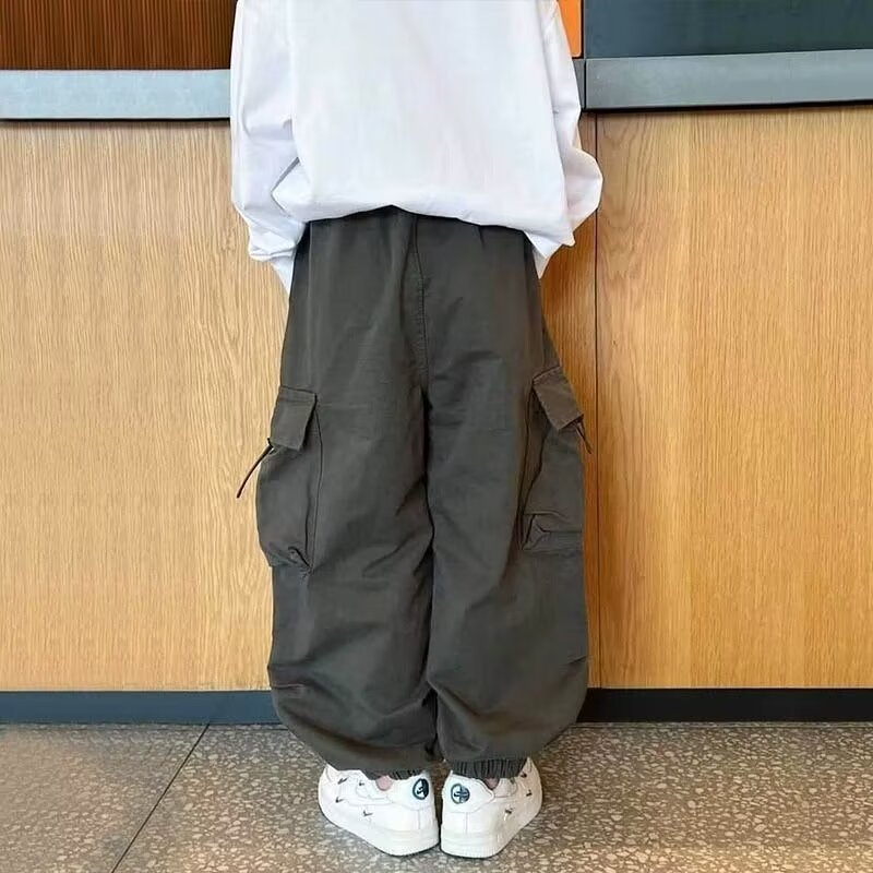 儿童裤子春秋纯棉工装裤男童大口袋休闲裤中大童宽松运动裤潮