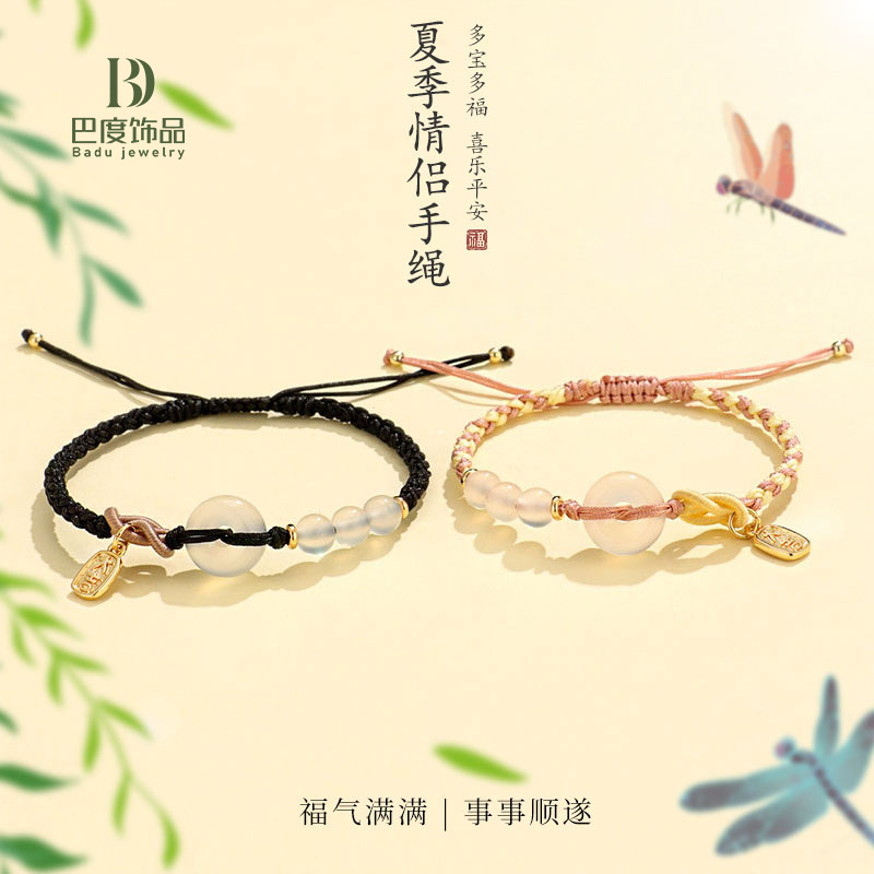 新品玛瑙平安扣手工编织手绳大吉吊牌情侣手链女小众高级感手饰
