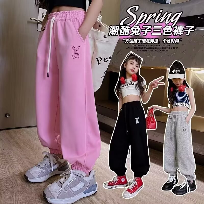 女童春秋卫裤运动裤休闲新款儿童中大童女孩宽松长裤春装童装